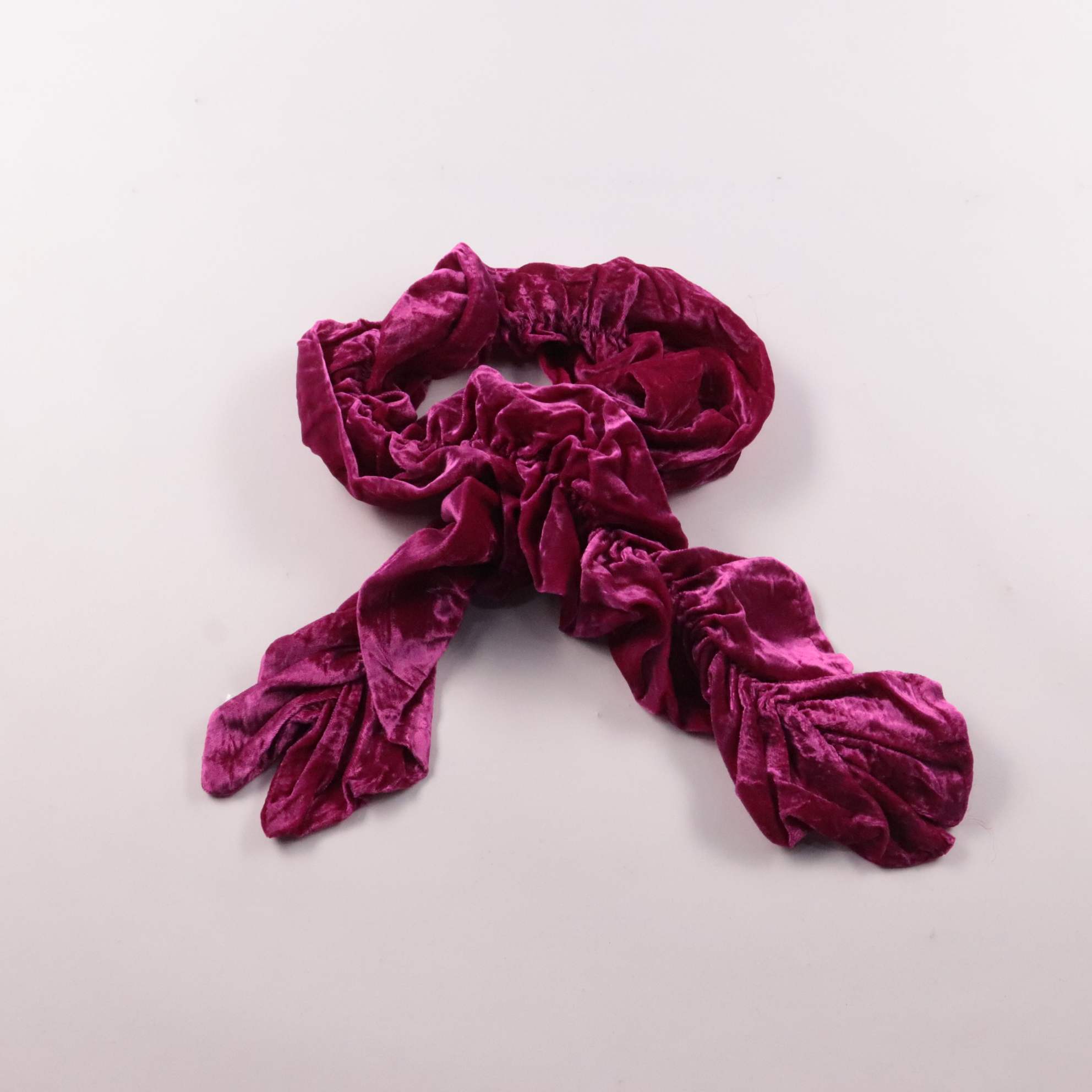 Бархатная резинка-скранчи для волос в насыщенном бордовом цвете. Подойдёт для хвоста или пучка на каждый день и для аккуратного образа на выход. Мягкий материал бережно фиксирует волосы и меньше цепляет их.