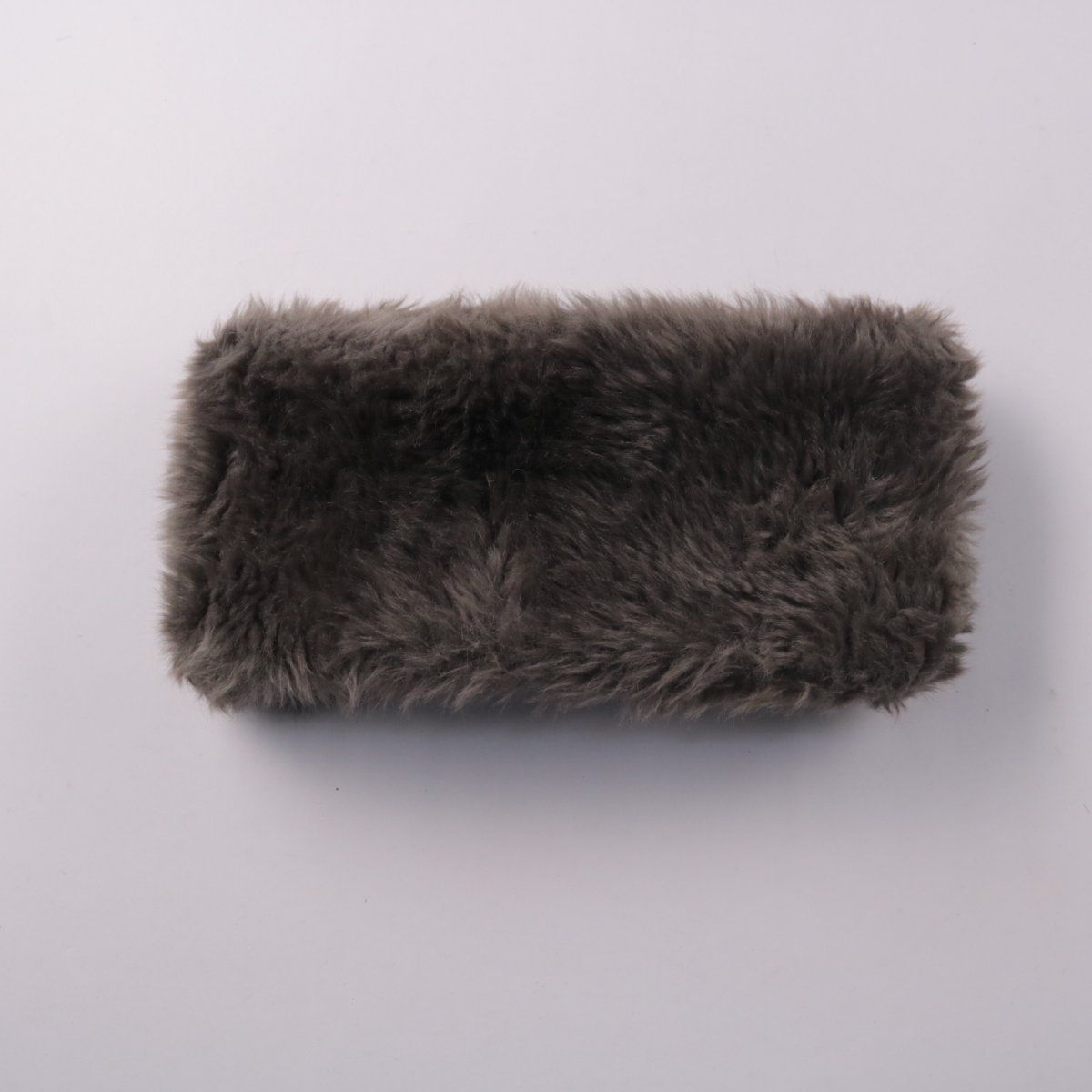 Меховая повязка на голову тёмно-серого цвета, мягкая и объёмная. Подойдёт для холодной погоды и прогулок, можно носить с пальто или пуховиком. Хорошо закрывает уши и добавляет тепла без необходимости надевать шапку.