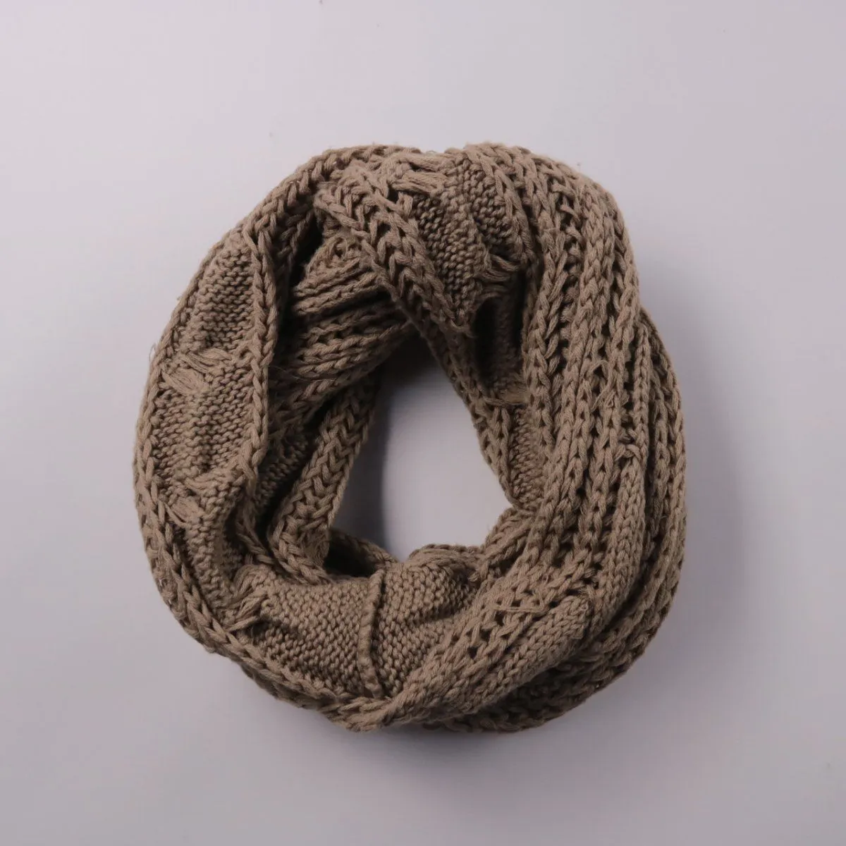 Вязаный шарф-снуд крупной вязки с узором «косы» в бежево-коричневом оттенке. Подойдёт для холодной погоды и повседневных образов, легко сочетается с курткой или пальто. Формат снуд удобно надевать и он хорошо закрывает шею от ветра.