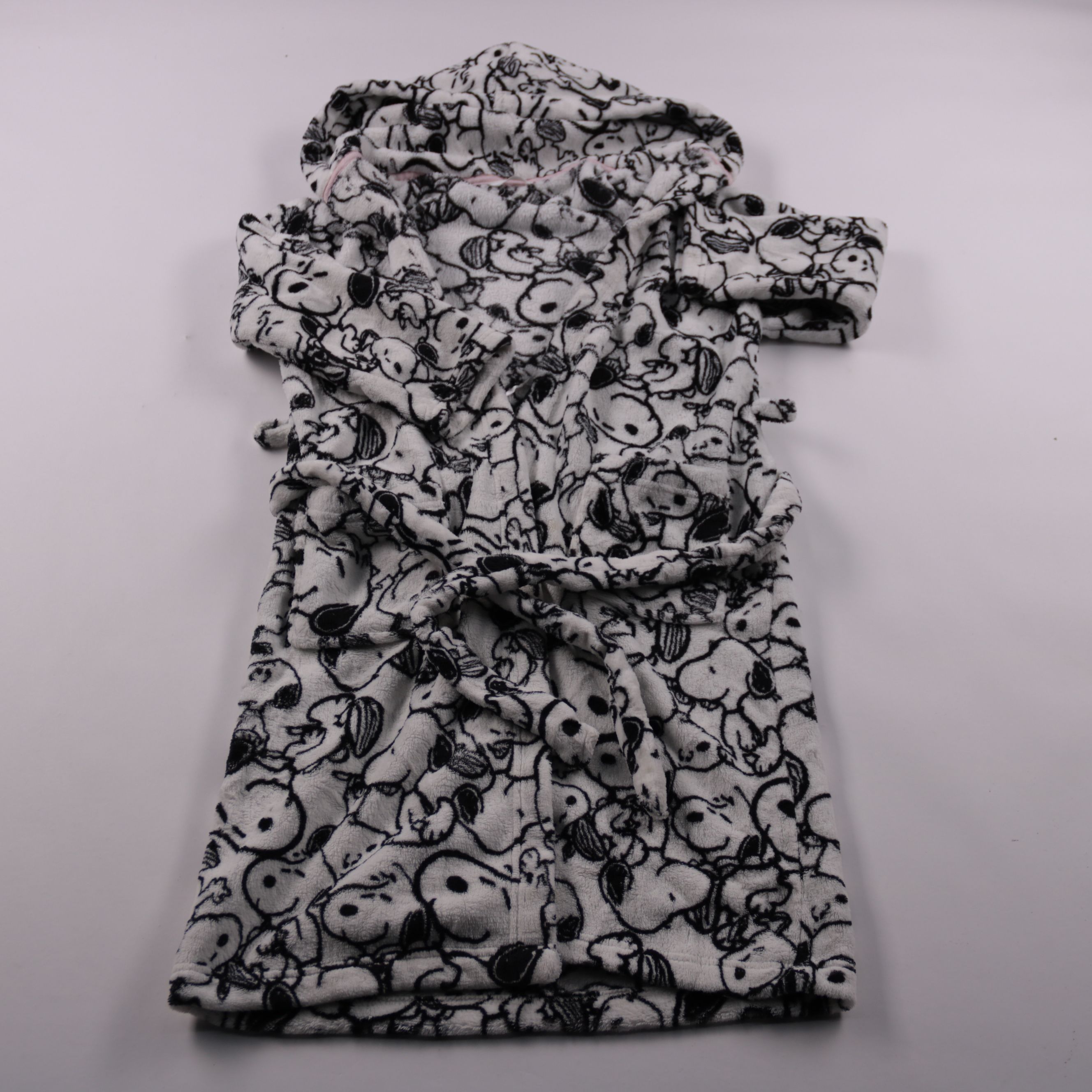 Детский домашний халат M&S из мягкого флиса с капюшоном и поясом, с принтом Snoopy. Подойдёт для дома после ванны или в прохладные вечера. Быстро согревает и легко стирается.