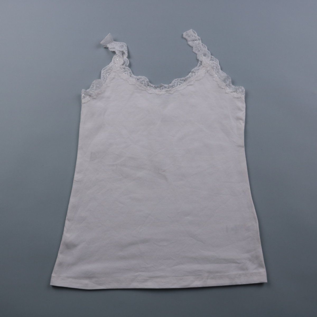 Детская белая майка George на тонких бретелях с кружевной отделкой по вырезу. Подойдёт для повседневной носки в качестве нижнего слоя или под школьную форму. Мягкий хлопковый материал тянется и удобно садится по фигуре.