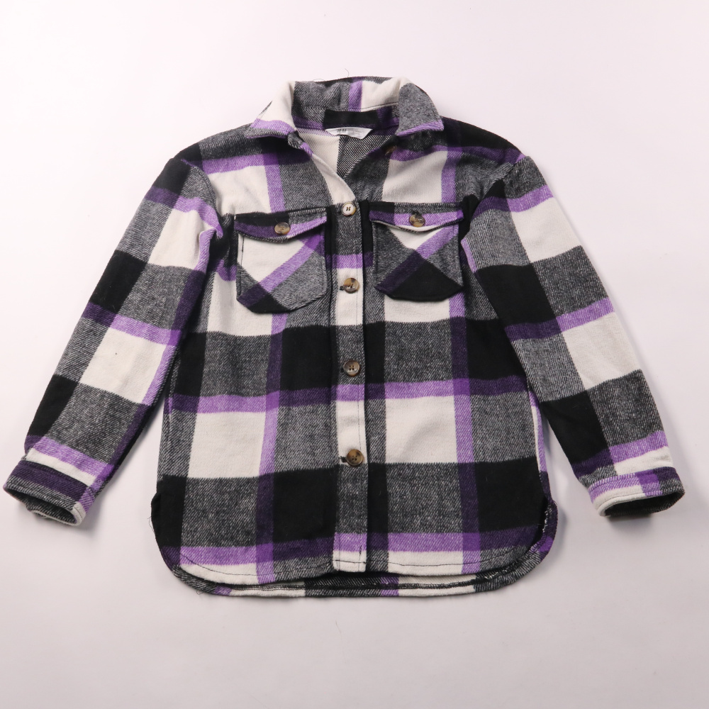 Рубашка H&M в клетку (чёрный/белый с фиолетовыми линиями), плотная и тёплая на ощупь, с застёжкой на пуговицы и нагрудными карманами. Подойдёт для школы и прогулок в прохладную погоду, можно носить как рубашку или как лёгкую рубашку-куртку поверх футбо...