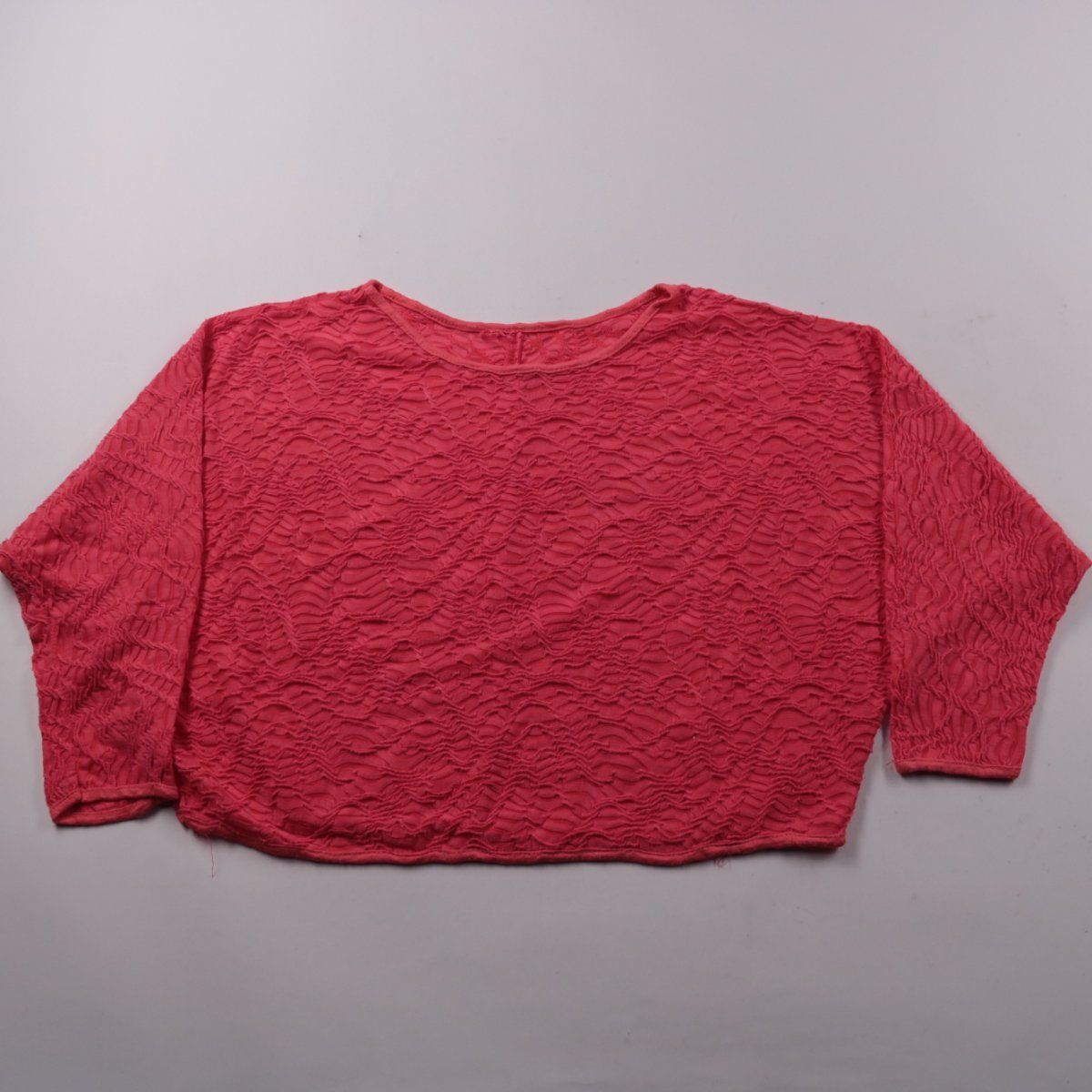 Укороченный топ для девочки из фактурной ткани, без принта, с округлым вырезом и рукавами до локтя. Подойдёт для тёплой погоды и многослойных образов с юбкой или шортами. Ткань эластичная и не сковывает движения.