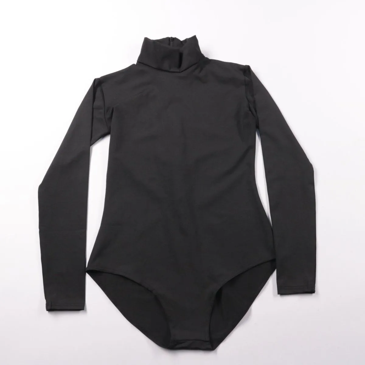 Комбинезон-купальник (леотард) Suprnova чёрного цвета с длинным рукавом и воротником-стойкой. Подойдёт для гимнастики, танцев, выступлений и тренировок, ткань хорошо тянется и сидит по фигуре. Практичен в уходе: быстро сохнет и почти не мнётся.
