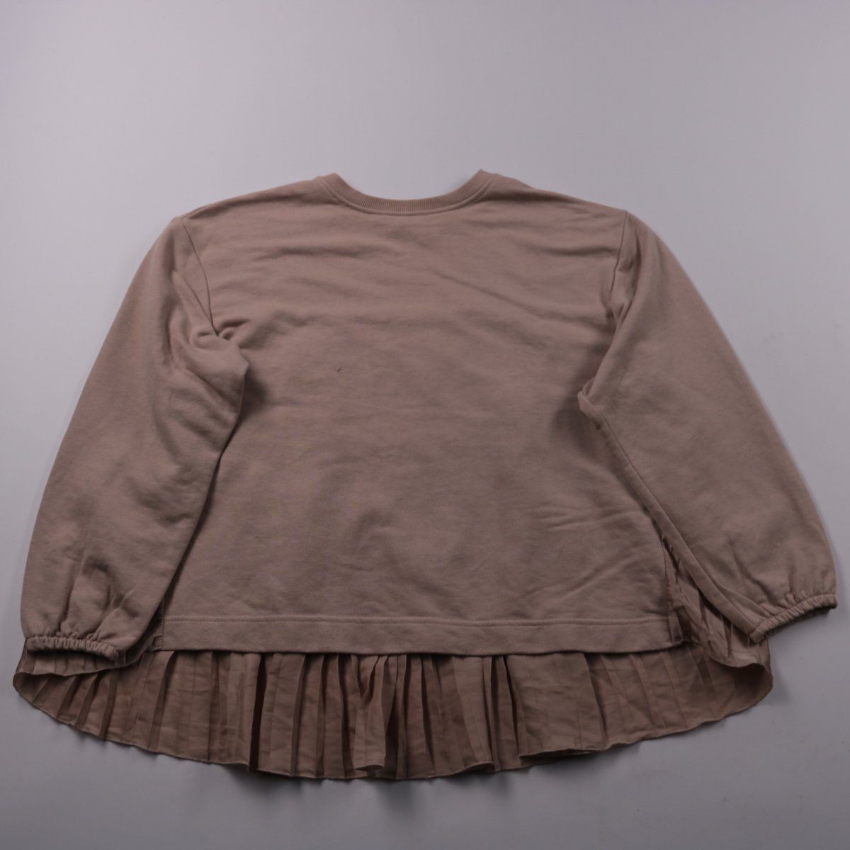 Толстовка Primark бежевого цвета с декоративной плиссированной вставкой по низу. Подойдёт для школы и прогулок в прохладную погоду, хорошо сочетается с легинсами и джинсами. Практичный плюс — мягкий трикотаж и немаркий оттенок, удобно в уходе.