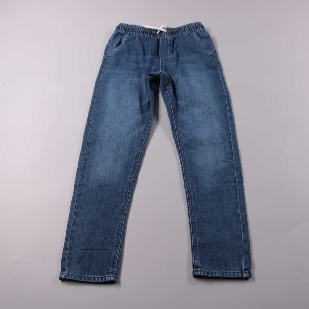 Джинсы Kiabi из плотного синего денима на эластичном поясе со шнурком. Подойдут мальчику на каждый день в школу и на прогулки. Пояс регулируется и удобно садится по фигуре.