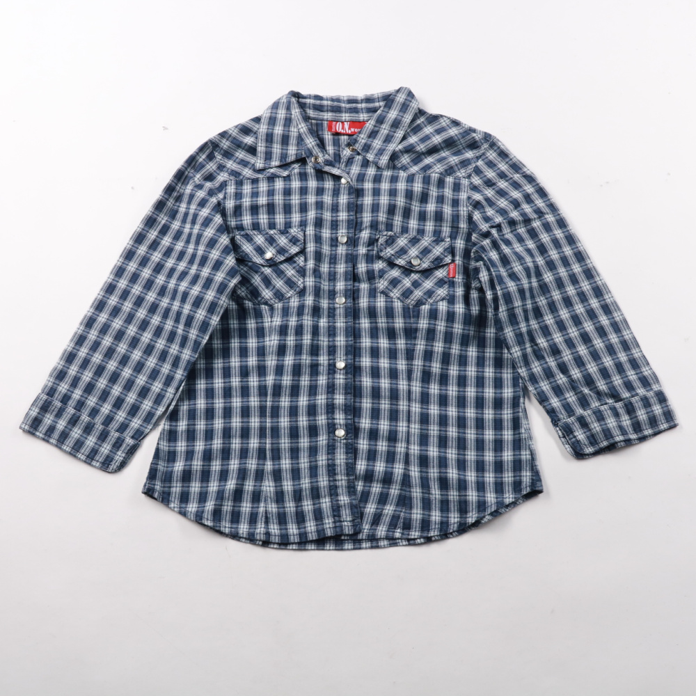 Рубашка O.N. в синюю клетку, застёгивается на пуговицы, с отложным воротником и двумя нагрудными карманами. Подойдёт для школы и повседневной носки в прохладное время, можно носить как верхний слой на футболку. Натуральный хлопок приятен к телу и хорош...