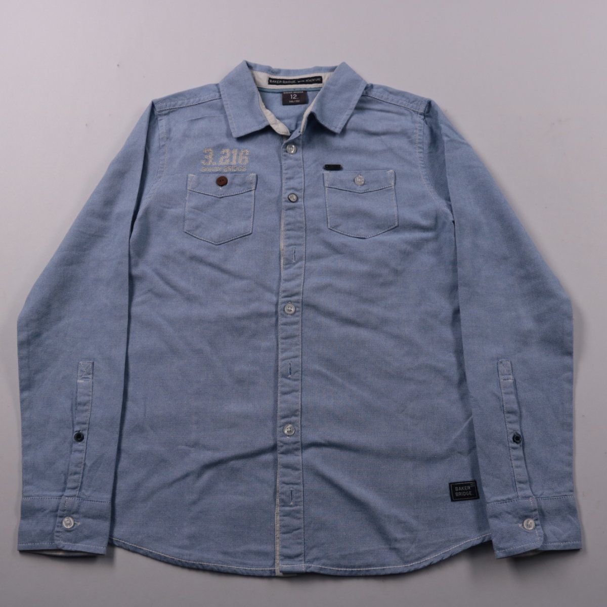 Рубашка Baker Bridge голубого цвета из 100% хлопка, с длинным рукавом и двумя нагрудными карманами. Подойдёт для школы и повседневной носки в любое время года, хорошо смотрится с джинсами или брюками. Натуральная ткань дышит и комфортна в носке.
