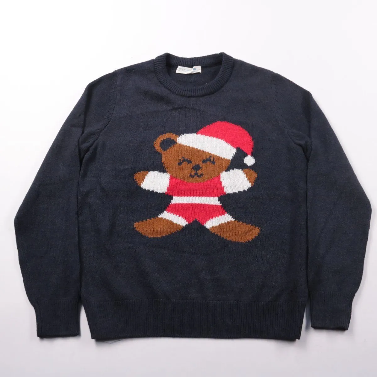 Детский свитер Primark Cares тёмно-синего цвета с вязаным рисунком медвежонка в новогоднем колпаке. Подойдёт для зимних прогулок, утренников и повседневной носки в холодное время. Мягкая пряжа и эластичные манжеты помогают сохранять тепло и удобно сидят по фигуре.