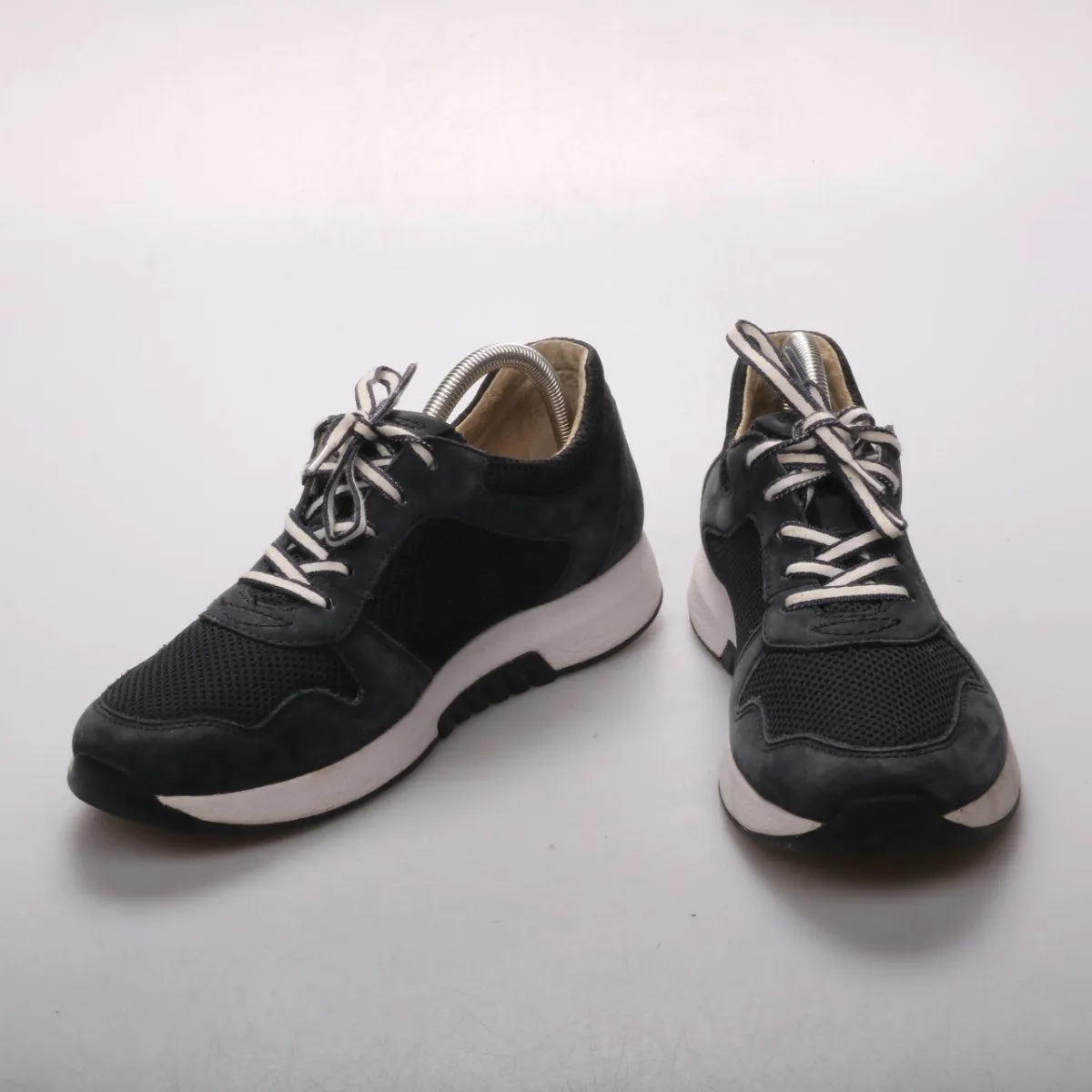 Кроссовки Gabor Rollingsoft в чёрном цвете с текстильными сетчатыми вставками и контрастной белой подошвой. Подойдут для повседневной носки в городе и прогулок в демисезон. Амортизирующая подошва делает шаг мягче и снижает усталость при длительной ходьбе.