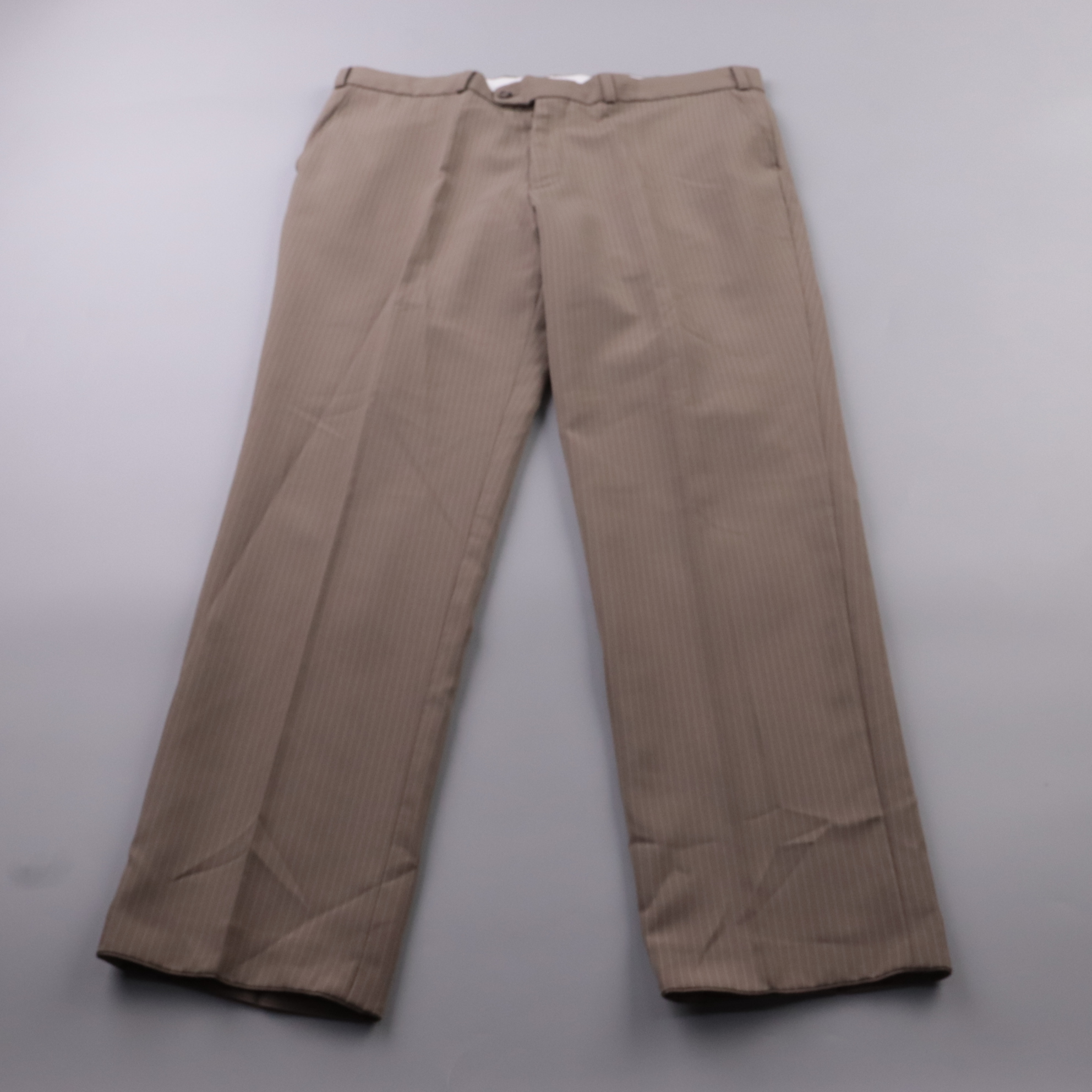 Мужские брюки Canda (Collection at C&A) бежевого цвета в тонкую полоску, с классической посадкой и прямыми штанинами. Подойдут для офиса и повседневных образов с рубашкой или джемпером. Практичный плюс — ткань почти не мнётся и проста в уходе.