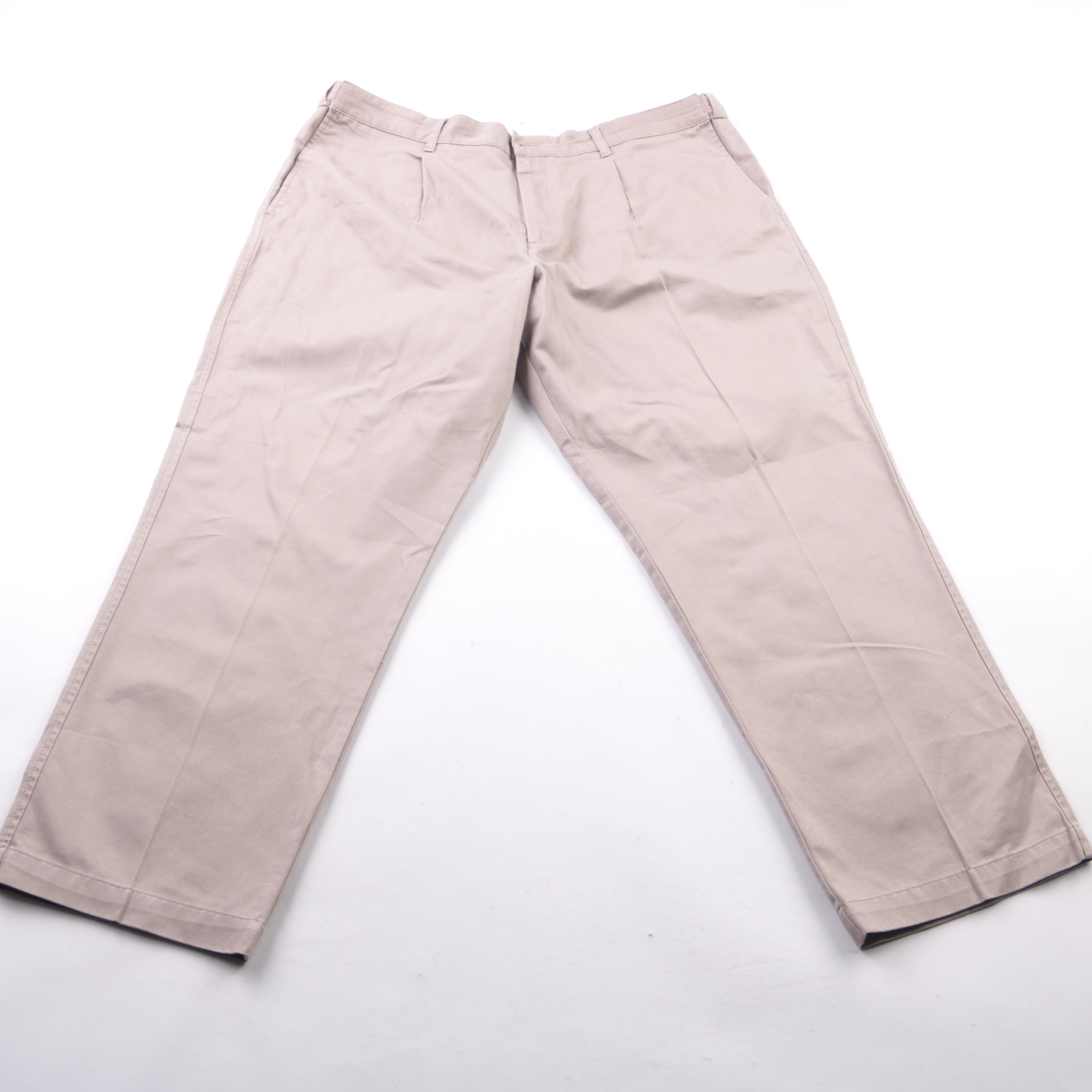 Мужские брюки Bhs светло-бежевого цвета, прямого кроя со шлёвками под ремень и боковыми карманами. Подойдут для повседневных и офисных образов в тёплую погоду или в помещении. Практичны в уходе и хорошо сочетаются с рубашками, поло и футболками.