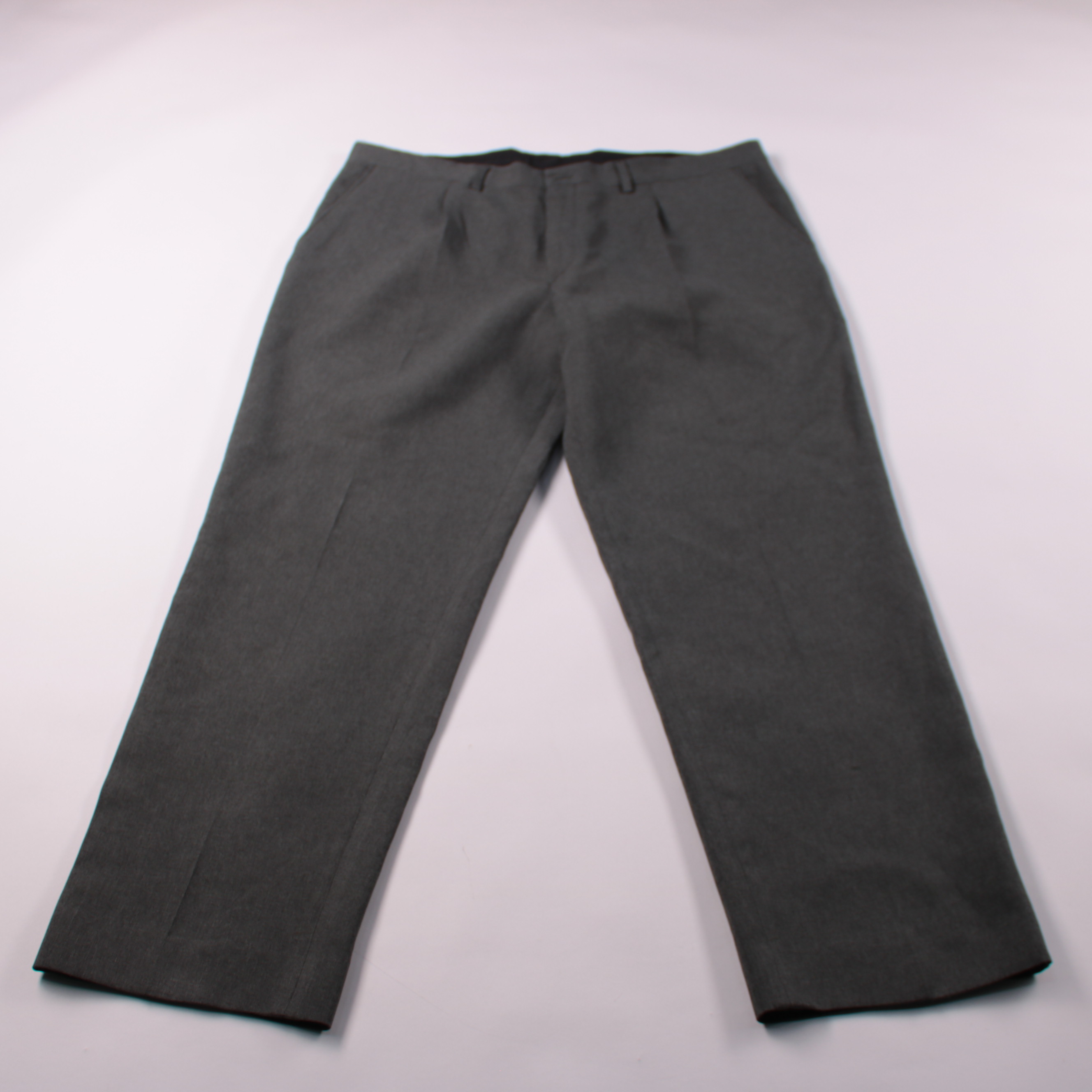 Мужские классические брюки тёмно-серого цвета, ровные и аккуратные по посадке. Подойдут для офиса, торжественных случаев и повседневных образов в стиле smart casual. Практичный материал из полиэстера мало мнётся и прост в уходе.