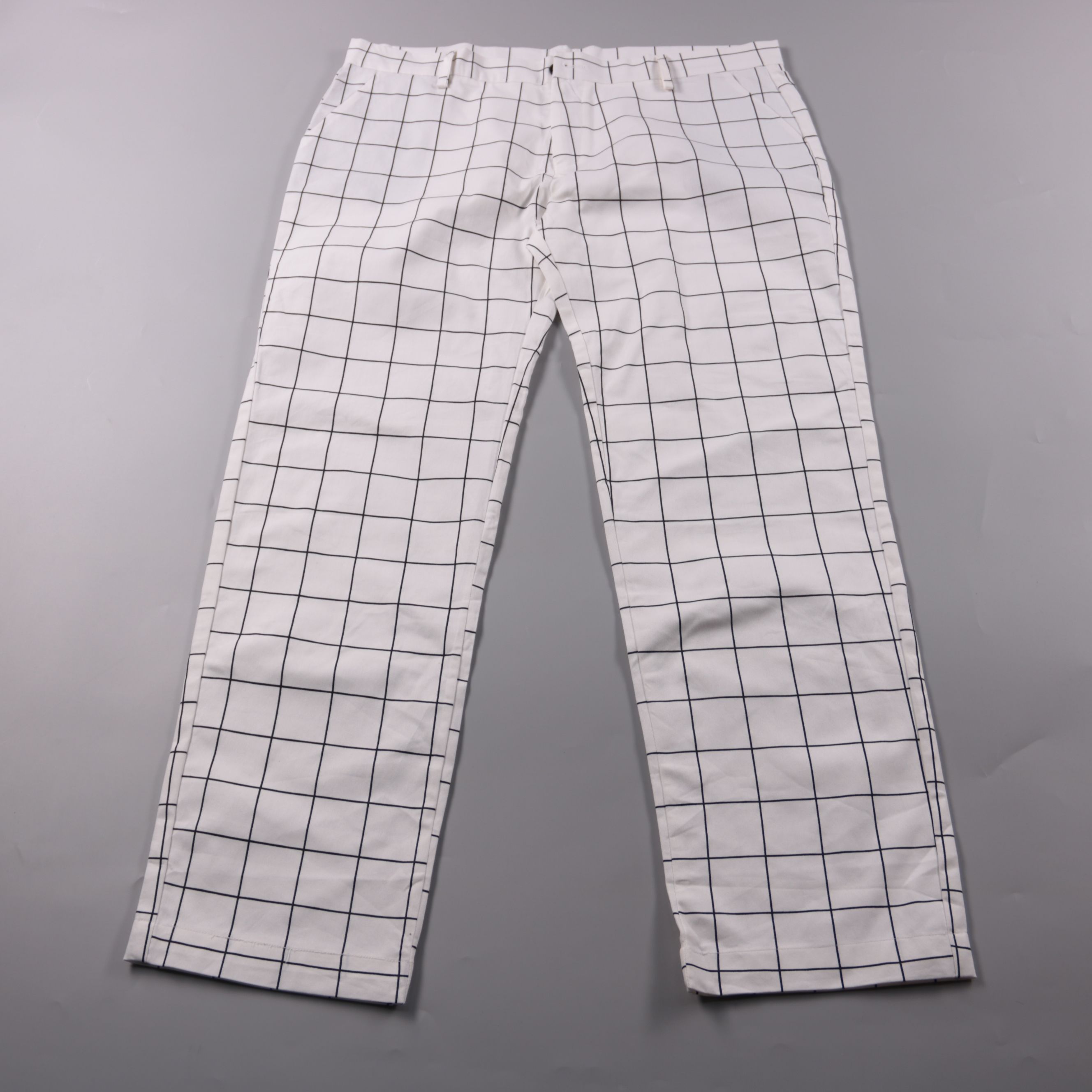 Брюки в белом цвете с контрастной чёрной клеткой, прямой крой. Подойдут для повседневных образов и мероприятий в стиле smart casual. Практичный материал из полиэстера почти не мнётся и быстро сохнет.