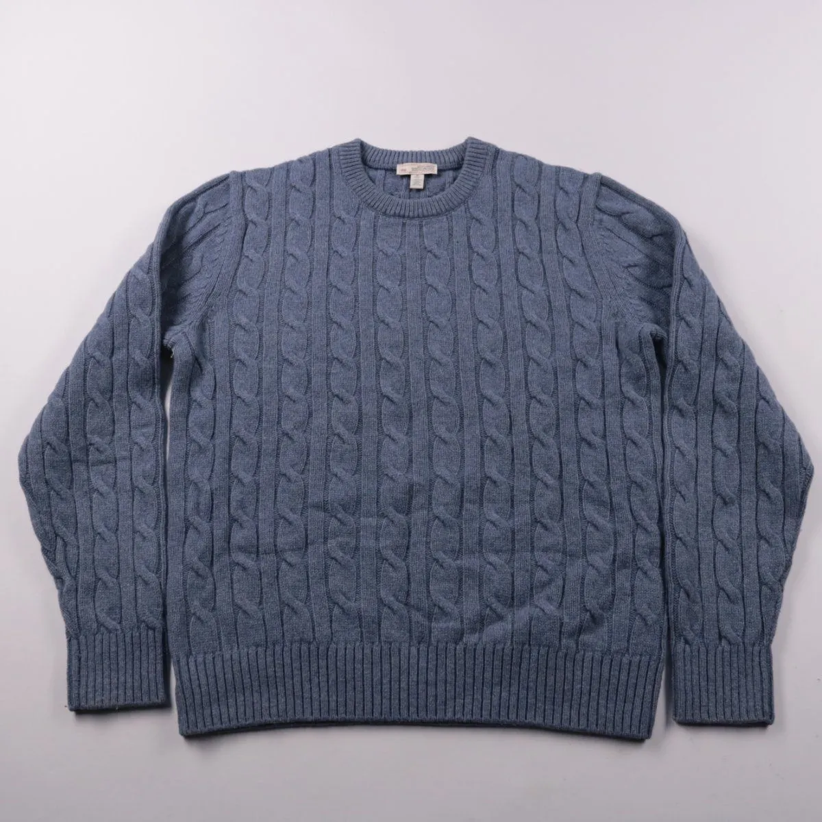 Мужской джемпер Gap с круглым вырезом и фактурной вязкой «косы», цвет серо-синий. Подойдёт для повседневной носки в прохладную погоду — с джинсами или брюками. Смесь шерсти ягнёнка с нейлоном хорошо держит тепло и при этом более износостойкая.