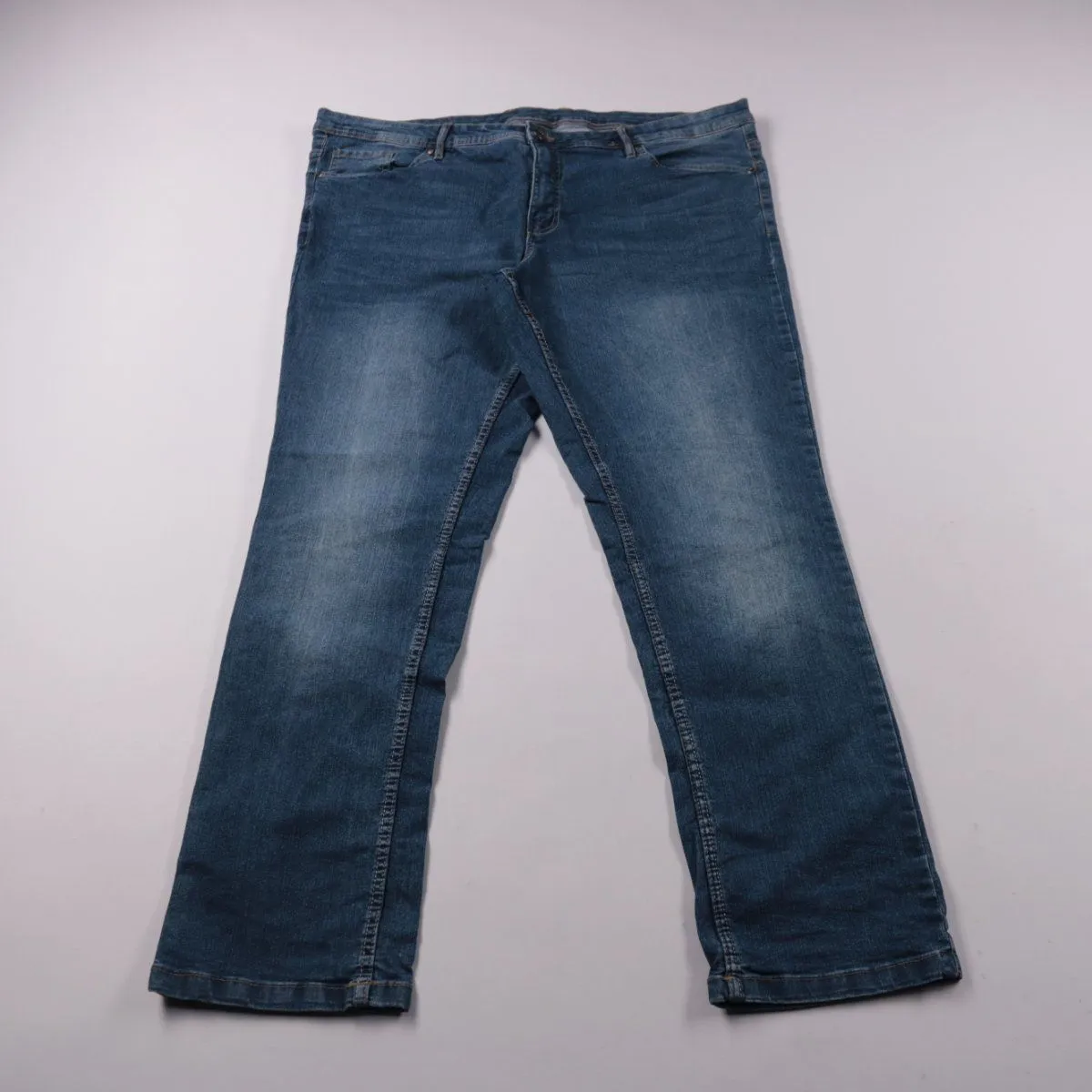 Мужские джинсы Luciano из эластичного денима, цвет синий с лёгкими потертостями. Подойдут для повседневной носки и работы, хорошо сочетаются с футболкой, рубашкой или свитшотом. Ткань тянется за счёт эластана, поэтому посадка комфортная и не сковывает движения.