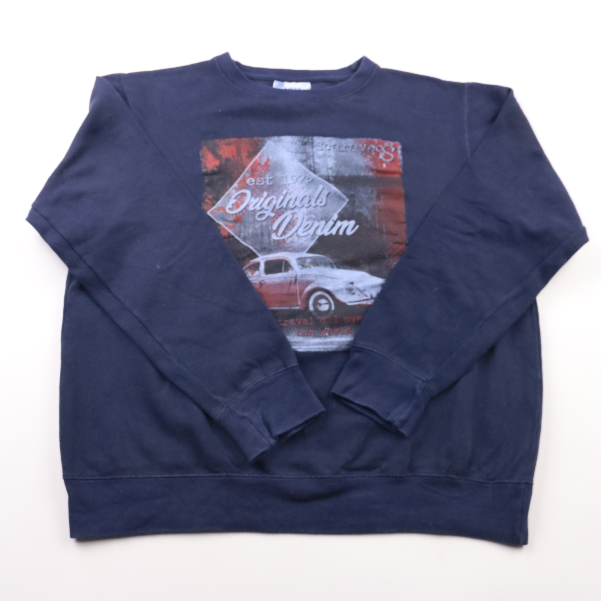 Мужской свитшот Aaltaz тёмно-синего цвета с принтом на груди. Подойдёт для повседневной носки в прохладную погоду и для многослойных образов. Мягкий хлопковый материал с добавлением полиэстера меньше мнётся и проще в уходе.