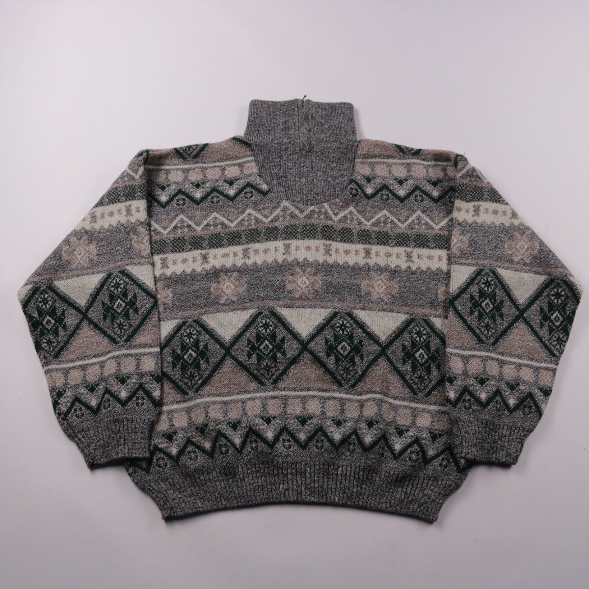 Серый меланж с бежево-зелёным геометрическим узором