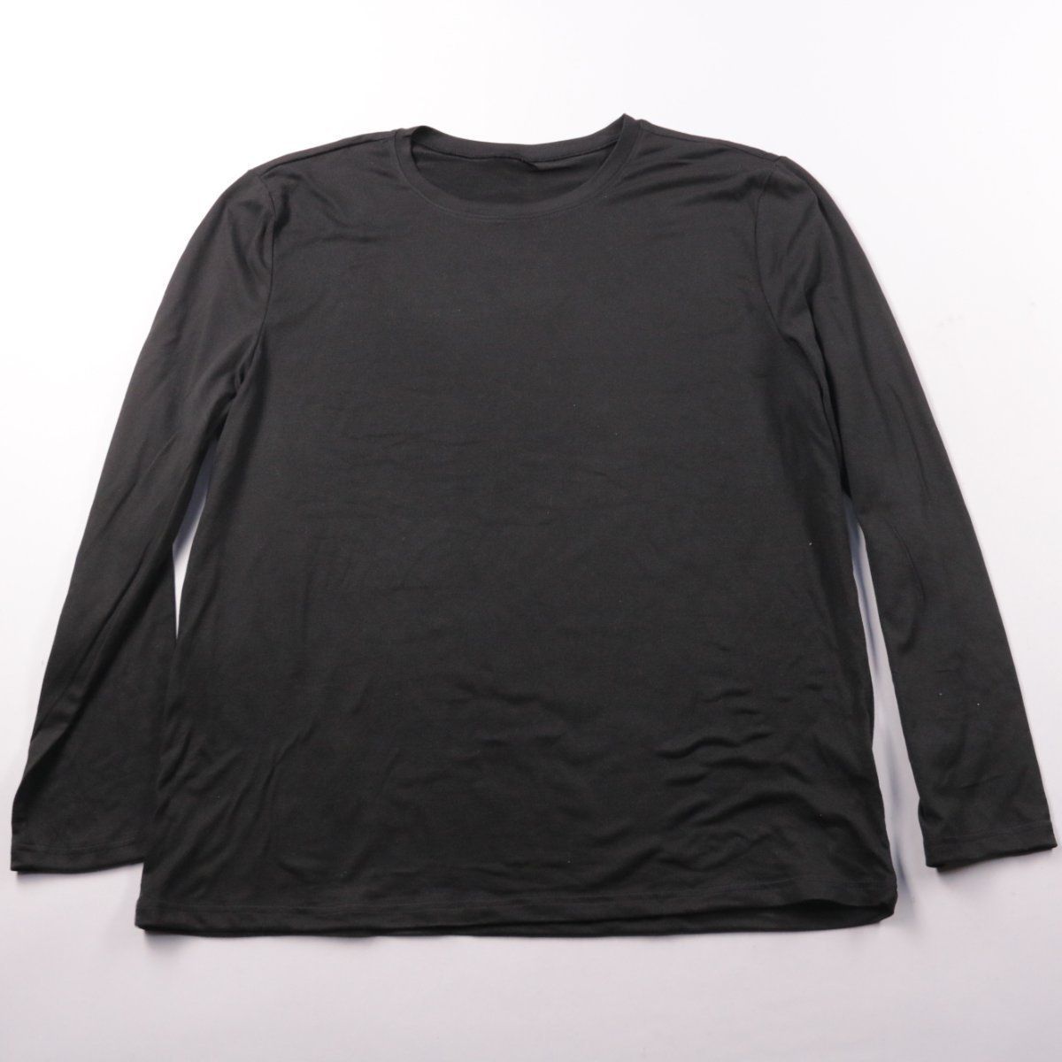 Мужской лонгслив чёрного цвета, без принта, с круглым вырезом. Подойдёт для повседневной носки и как базовый слой под куртку или худи. Материал тянется и быстро сохнет благодаря составу с эластаном.