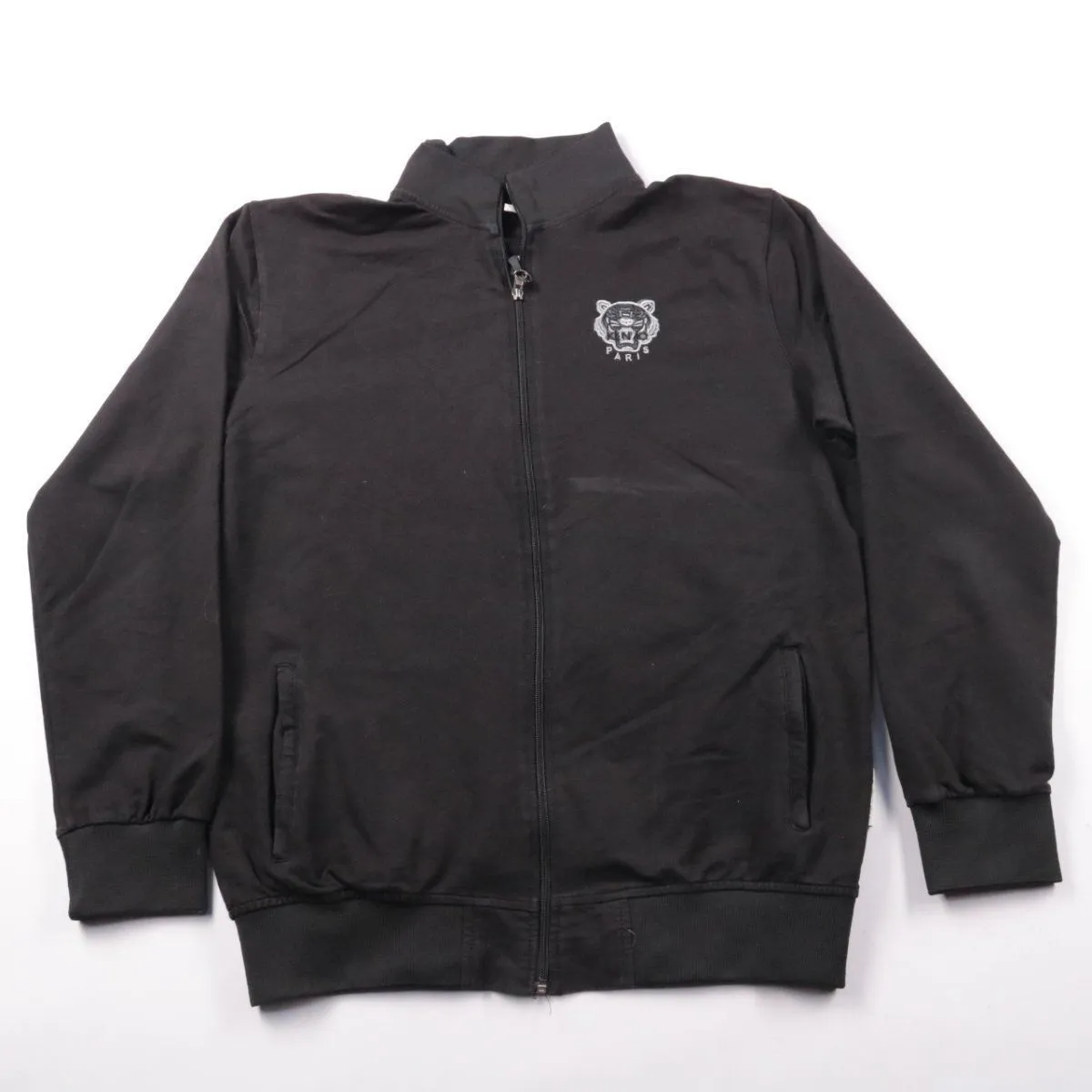Мужская толстовка Kenzo на молнии, чёрного цвета, с вышитым логотипом на груди и крупным принтом на спине. Подойдёт для повседневной носки и спорта в прохладную погоду, удобно сочетать с джинсами или спортивными брюками. Практичный плюс — эластичный материал и карманы для мелочей.