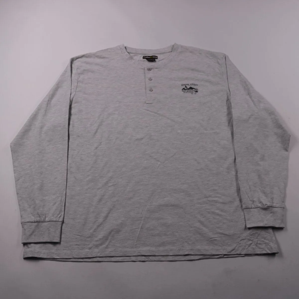 Мужская футболка Atlasformen с длинным рукавом и планкой на пуговицах (henley), в сером меланже с небольшой вышивкой на груди. Подойдёт для повседневной носки и как базовый слой в прохладную погоду. Натуральный хлопковый состав приятен к телу и хорошо дышит.