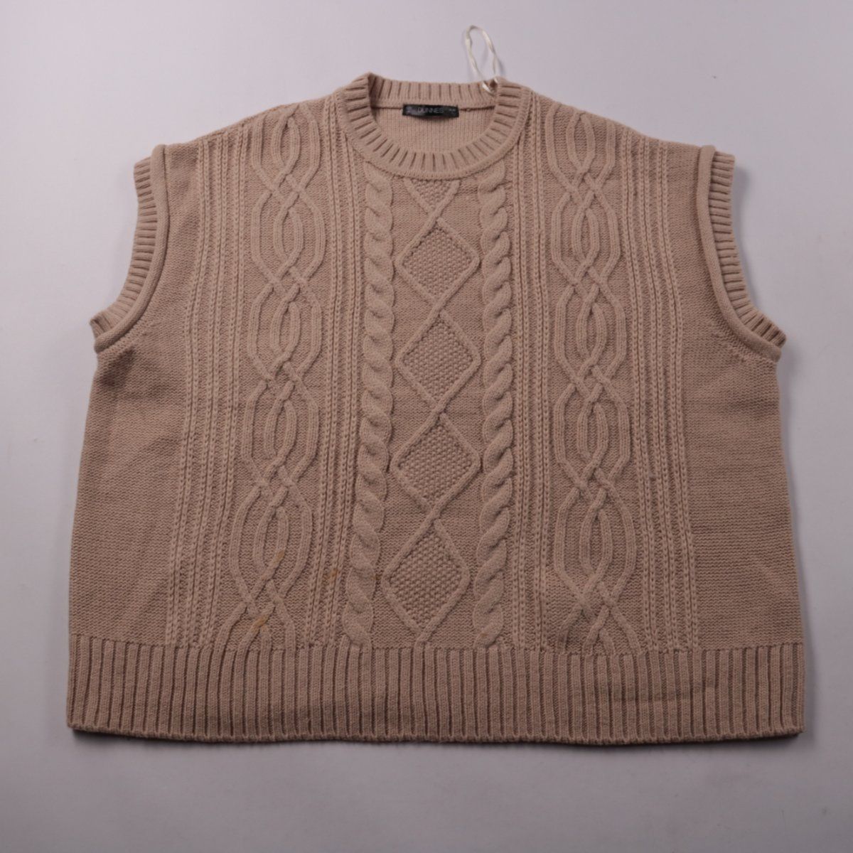 Вязаный мужской жилет Dunnes с круглым вырезом и рельефным узором «косы», без рукавов. Подойдёт для многослойных образов поверх рубашки или лонгслива в прохладную погоду. Акриловая пряжа практична в уходе и хорошо держит форму.