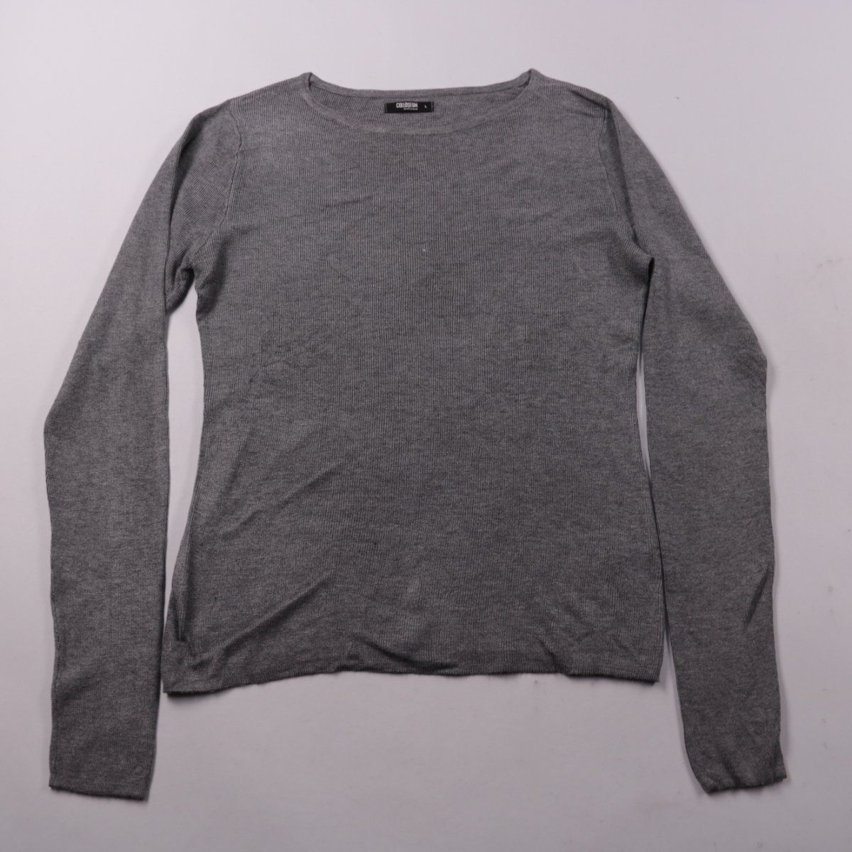 Мужской тонкий джемпер Colloseum из трикотажа в рубчик, серого цвета, с круглым вырезом и длинным рукавом. Подойдёт для повседневной носки в офисе или на прогулку, хорошо смотрится как самостоятельный слой или под куртку. Материал с вискозой приятный к телу и легко комбинируется с джинсами и брюками.