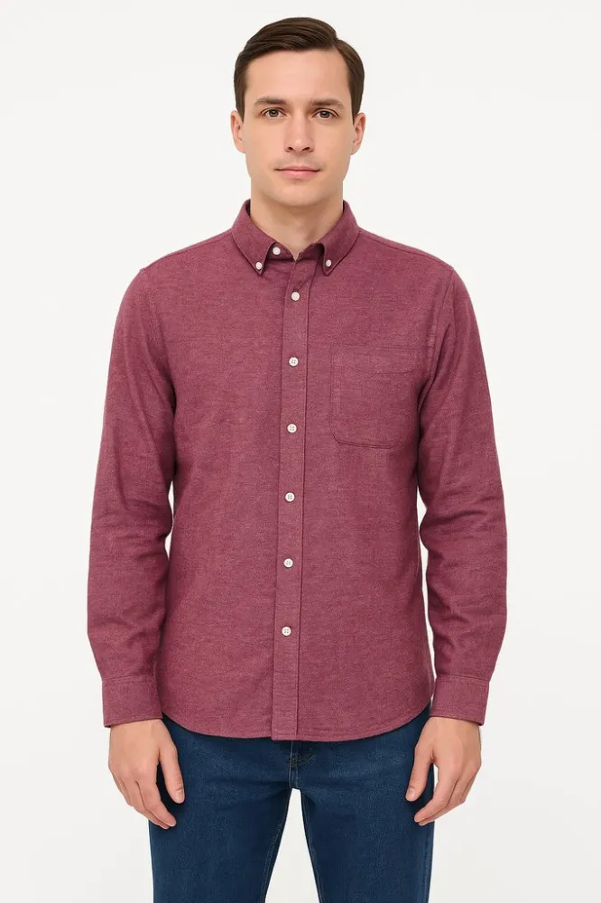 Мужская рубашка CROWNAYS бордового цвета с длинным рукавом и воротником на пуговицах. Подойдёт для офиса и повседневных образов с джинсами или чиносами. Хлопок 100% хорошо дышит и комфортен в носке.