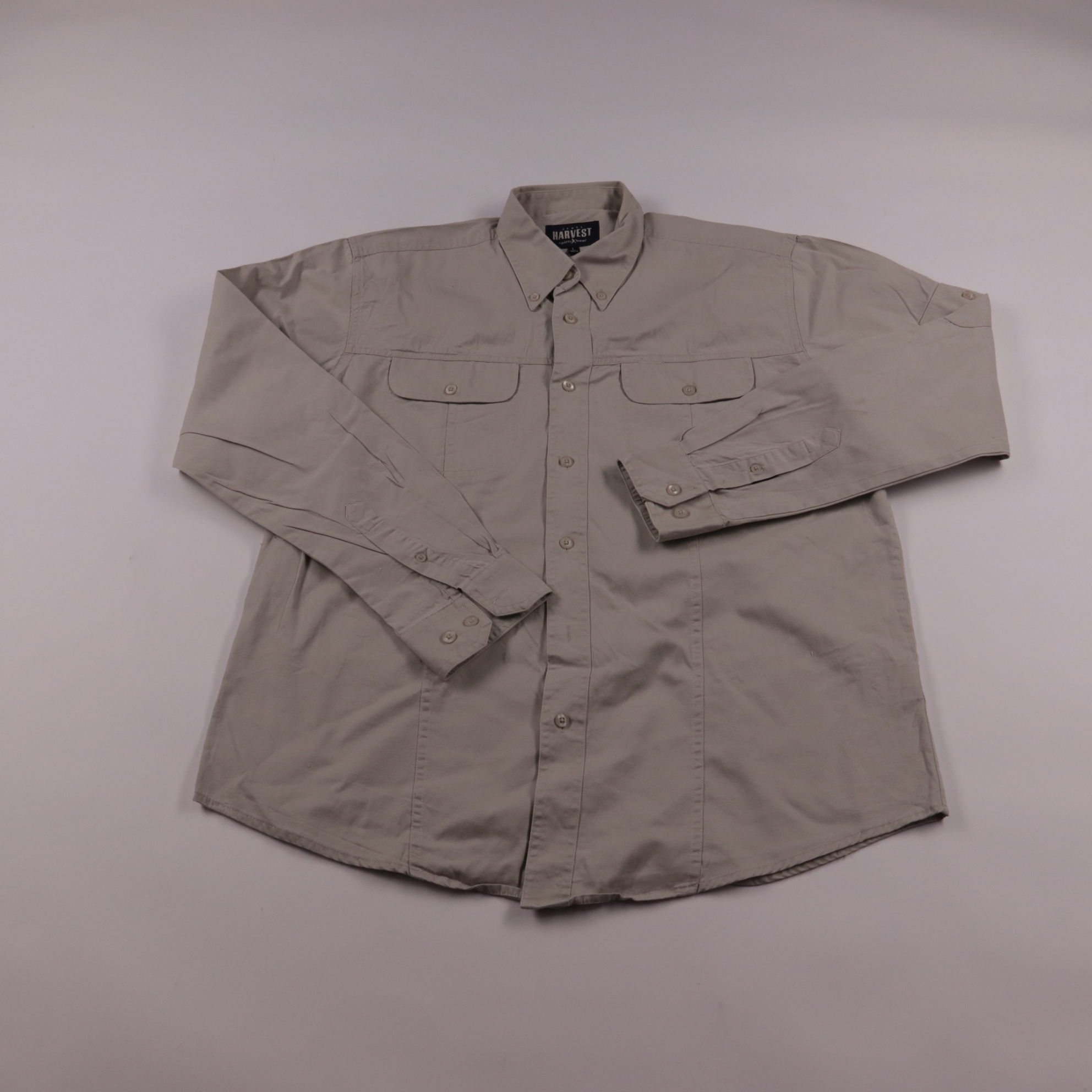 Мужская рубашка James Harvest из плотного хлопка, бежевого цвета, с длинным рукавом и застёжкой на пуговицы. Подойдёт для повседневной носки, офиса или поездок благодаря классическому прямому крою и двум нагрудным карманам с клапанами. Практичный хлопо...