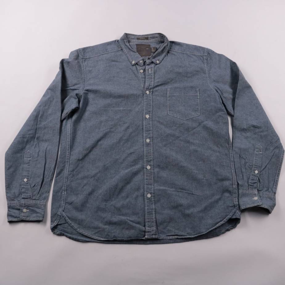 Мужская джинсовая рубашка H&M (L.O.G.G.) из мягкого хлопка, синего цвета, с нагрудным карманом и застёжкой на пуговицы. Подойдёт для повседневной носки и в офис в стиле casual, хорошо смотрится как самостоятельный верх или как лёгкая накидка. Практичны...