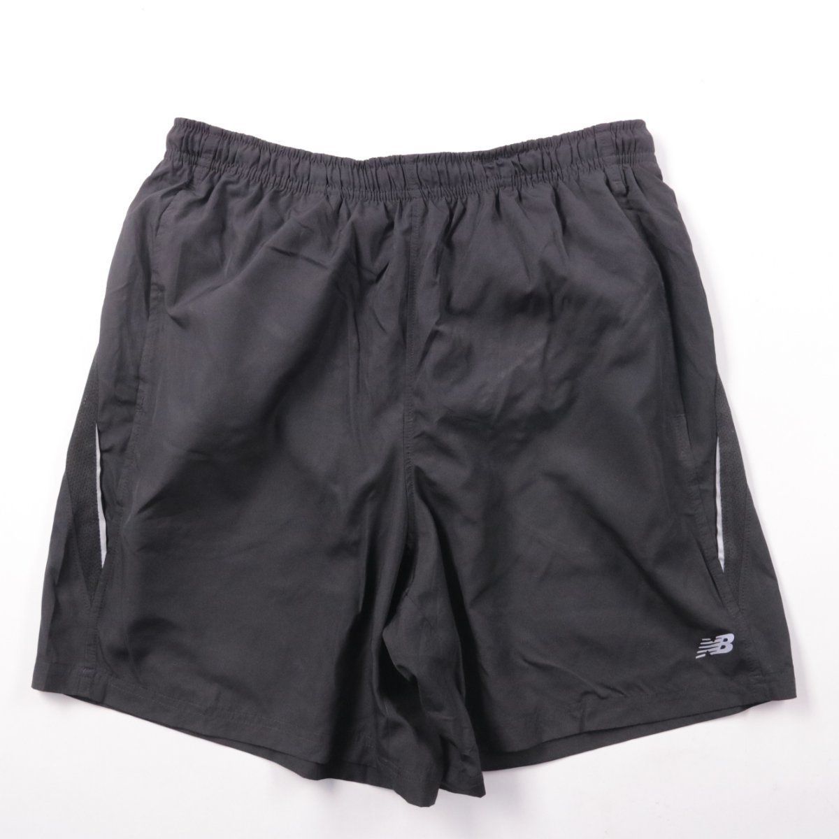 Мужские спортивные шорты New Balance чёрного цвета с эластичным поясом и карманами. Подойдут для тренировок, бега и повседневной носки в тёплую погоду. Лёгкая ткань быстро сохнет и не сковывает движения.