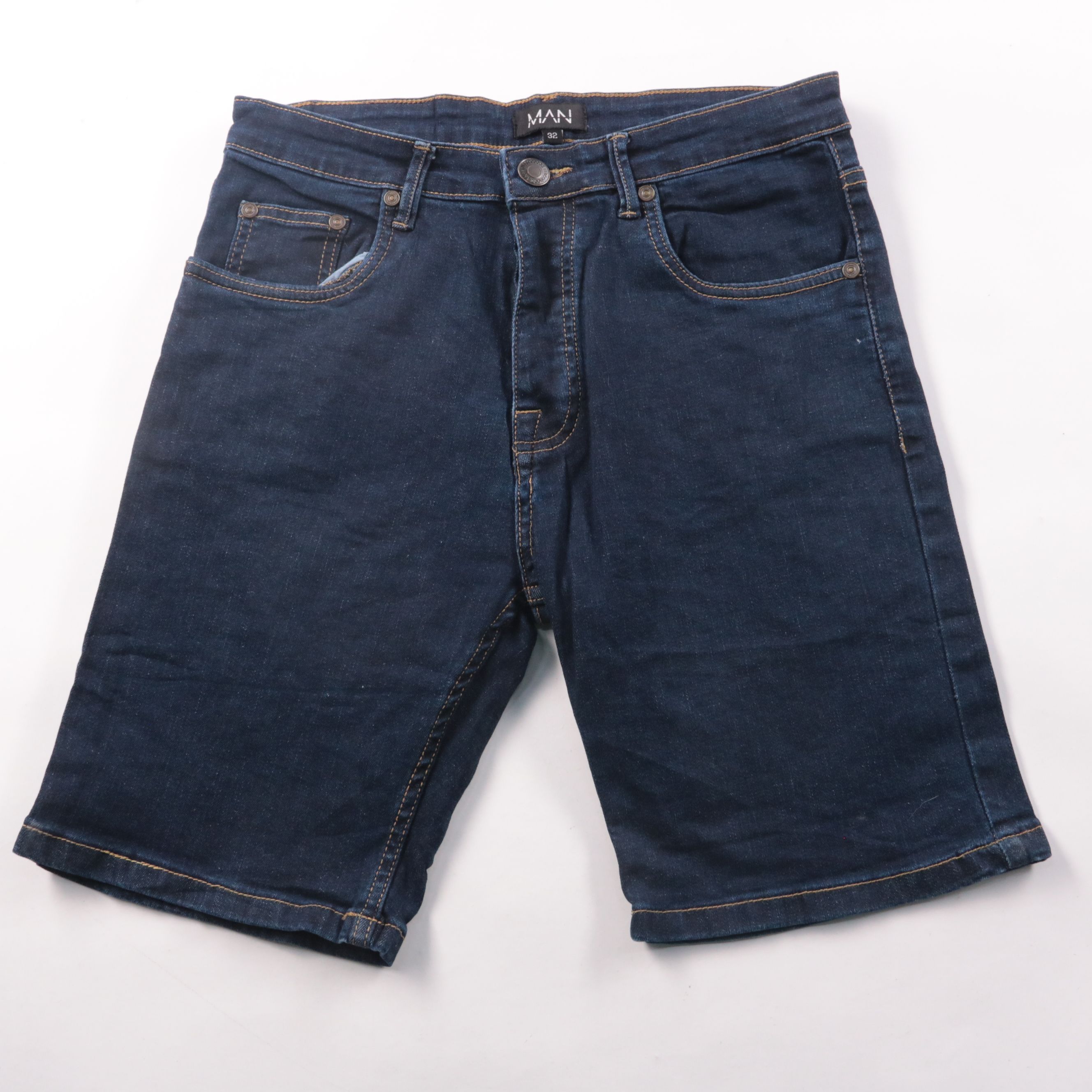 Джинсовые мужские шорты MAN тёмно-синего цвета, классическая посадка и 5 карманов. Подойдут для повседневной носки летом и в отпуске. За счёт добавления эластана ткань немного тянется и комфортнее сидит в движении.
