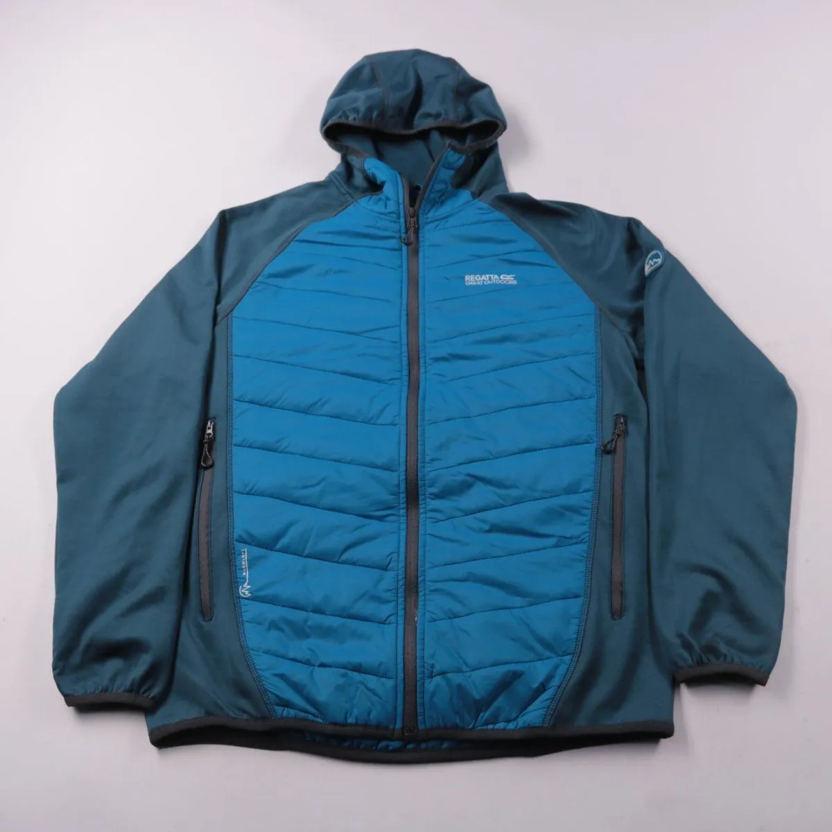 Мужская куртка Regatta Great Outdoors с капюшоном, комбинированная: стёганая утеплённая передняя часть и эластичные рукава. Подойдёт для прогулок и активного отдыха в прохладную погоду. Практичные карманы на молниях и лёгкий материал удобны в носке.