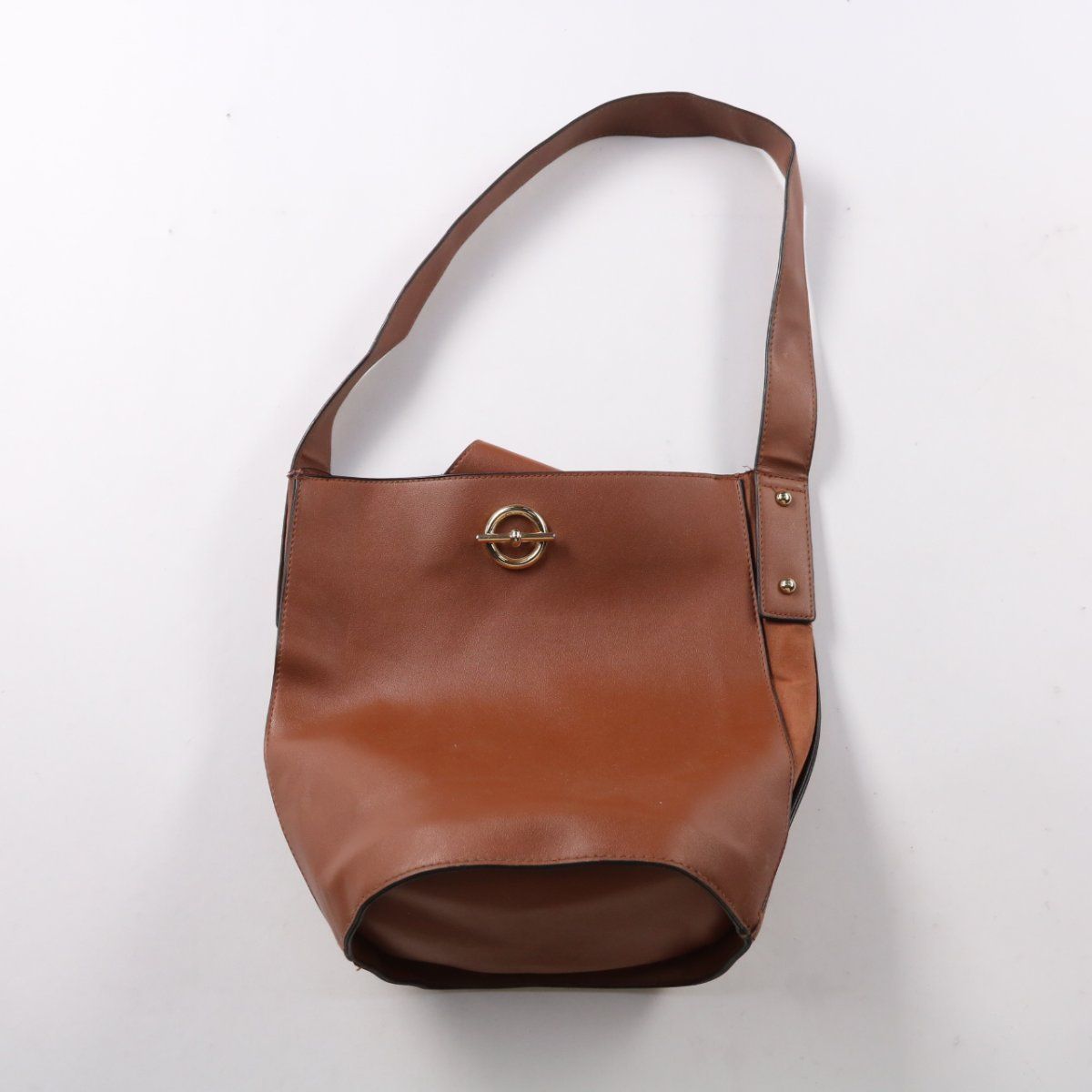Сумка через плечо коричневого цвета с декоративной металлической фурнитурой и внутренним карманом. Подойдёт на каждый день и для города, когда нужно взять самое необходимое. Длинный ремень освобождает руки и удобно носится на плече.