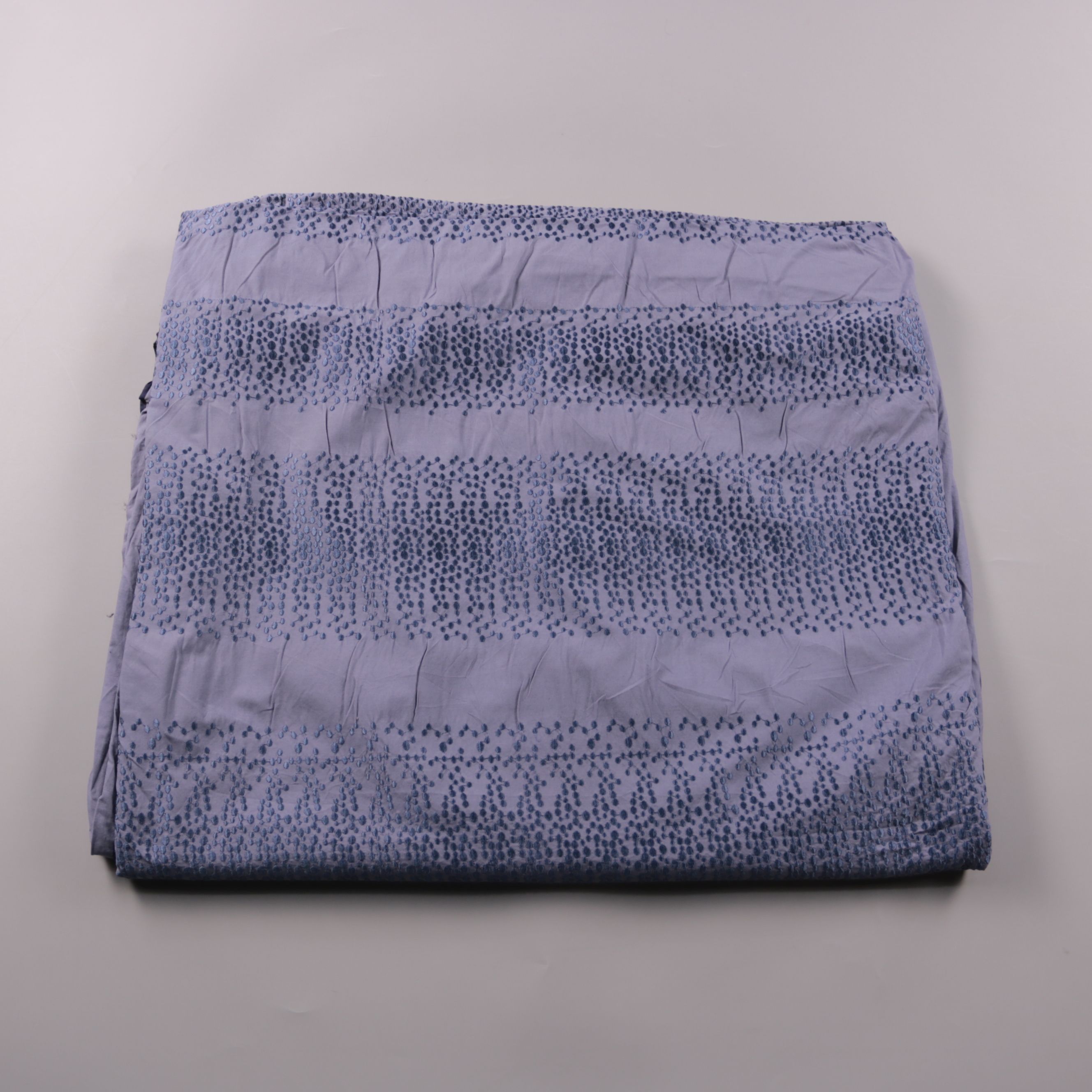 Постельное бельё в серо-голубом оттенке с полосатым рисунком из точек, застёгивается на пуговицы. Подойдёт для спальни в спокойных тонах и на каждый день. Практично тем, что легко стирается и быстро сохнет.