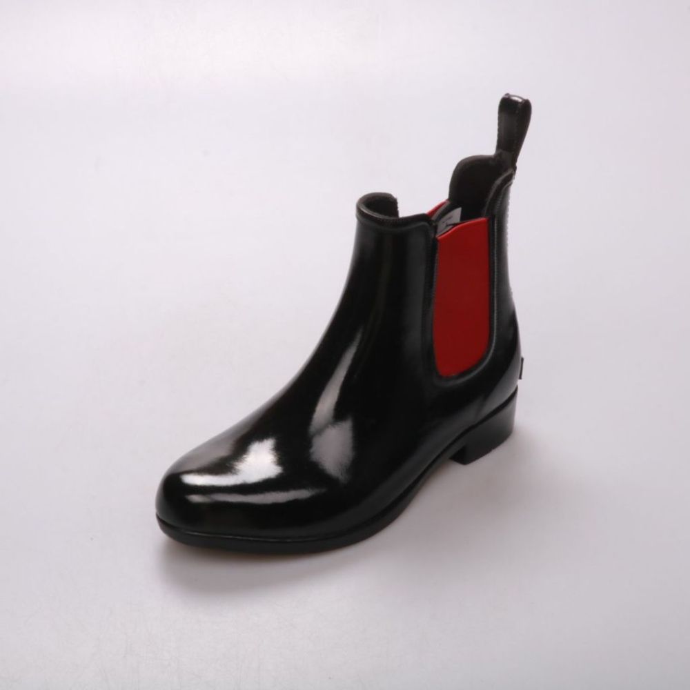 Демисезонные ботинки Rouchette в стиле челси из глянцевого материала с красными эластичными вставками по бокам. Подойдут для города и дождливой погоды, легко сочетаются с джинсами и платьями. Практичное преимущество — быстро надеваются за счёт резинок ...