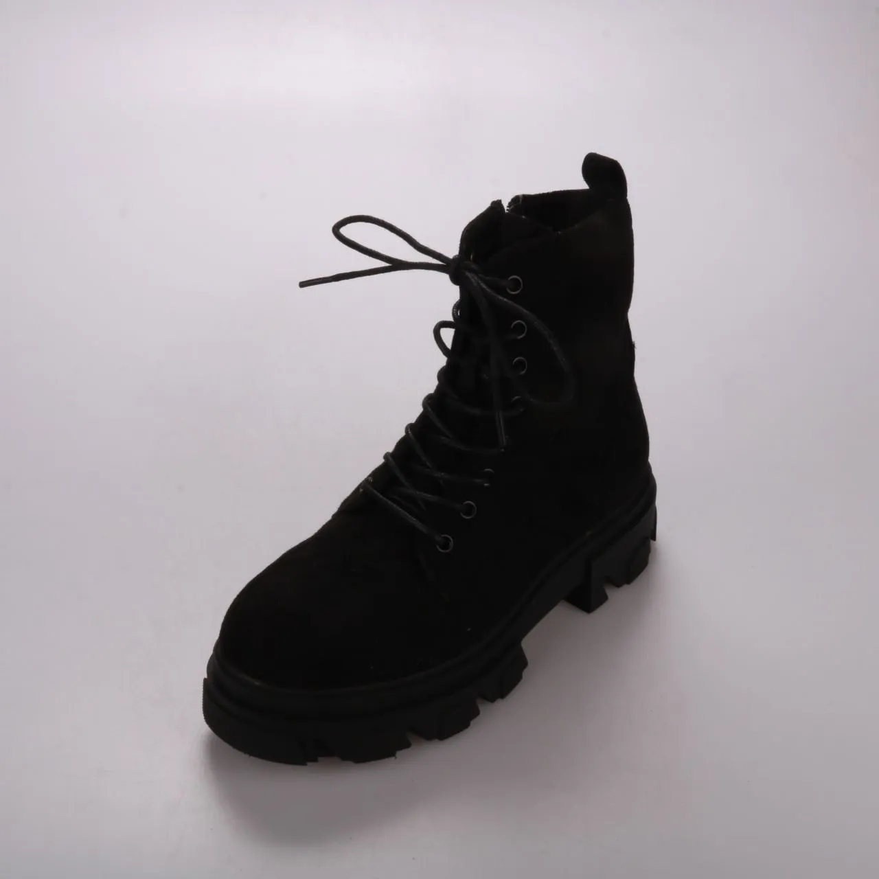 Женские ботинки на шнуровке с боковой молнией и массивной тракторной подошвой. Подойдут для повседневной носки в межсезонье и прохладную погоду. Удобно надевать за счёт молнии, а подошва даёт хорошее сцепление.