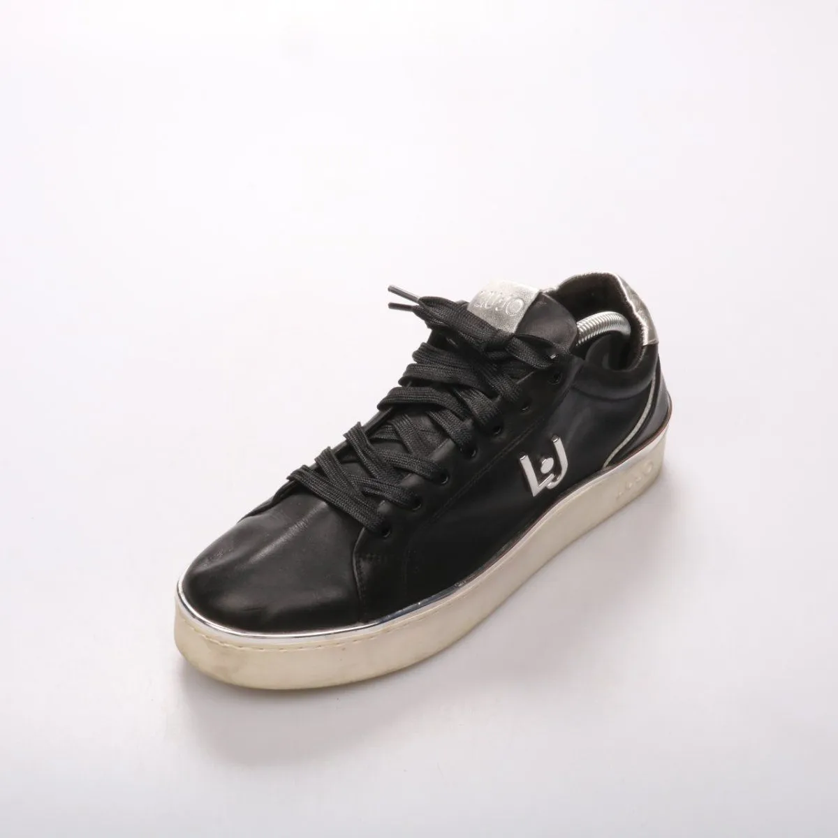 Женские кроссовки Liu Jo в черном цвете с контрастной белой подошвой и серебристыми вставками. Подойдут для повседневных образов в демисезон и прохладное лето, хорошо сочетаются с джинсами и платьями. Практичная плотная подошва удобна для длительных прогулок.