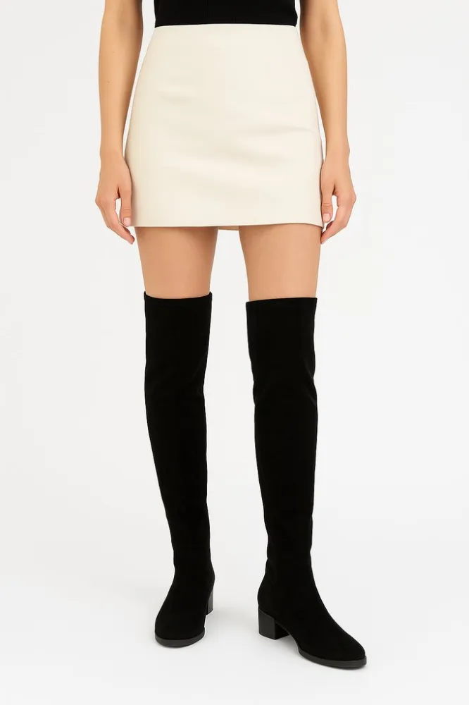 Женские сапоги-ботфорты из мягкого текстиля (стрейч) в чёрном цвете, с боковой молнией и небольшим устойчивым каблуком. Подойдут для демисезона и прохладных дней, хорошо смотрятся с платьями, юбками и узкими джинсами. Эластичное голенище комфортно обле...