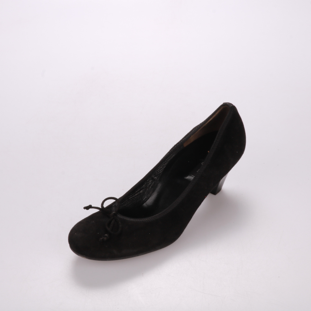 Туфли Paul Green из чёрной замши на устойчивом каблуке и с аккуратным бантиком спереди. Подойдут для офиса и повседневных образов, когда нужен сдержанный, классический силуэт. Невысокий каблук делает пару удобной для длительной носки.