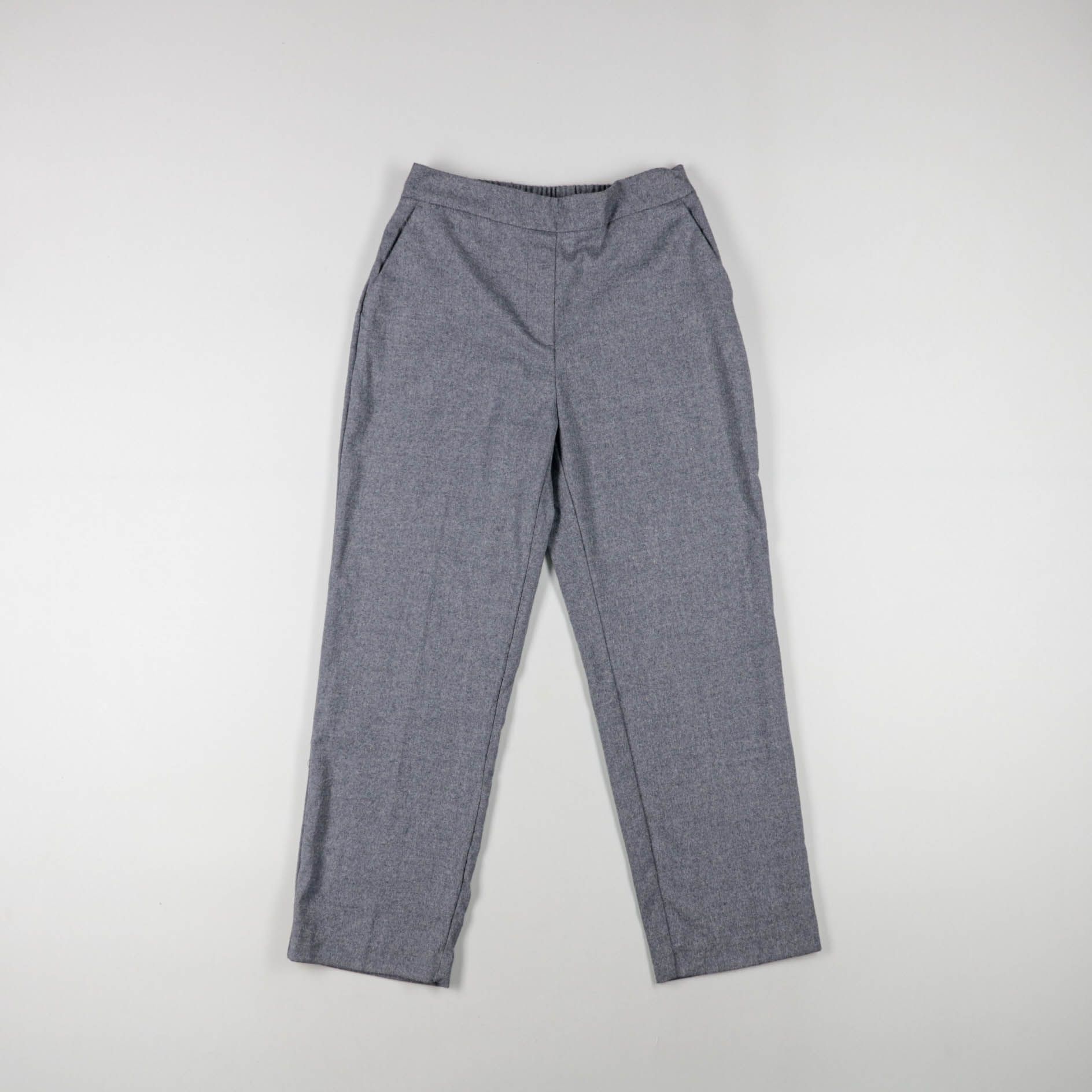Женские серые брюки прямого кроя с аккуратной посадкой и карманами. Подойдут для офиса и повседневных образов с рубашкой или свитером. Практичный плюс — эластичный пояс сзади, который добавляет комфорта в носке.
