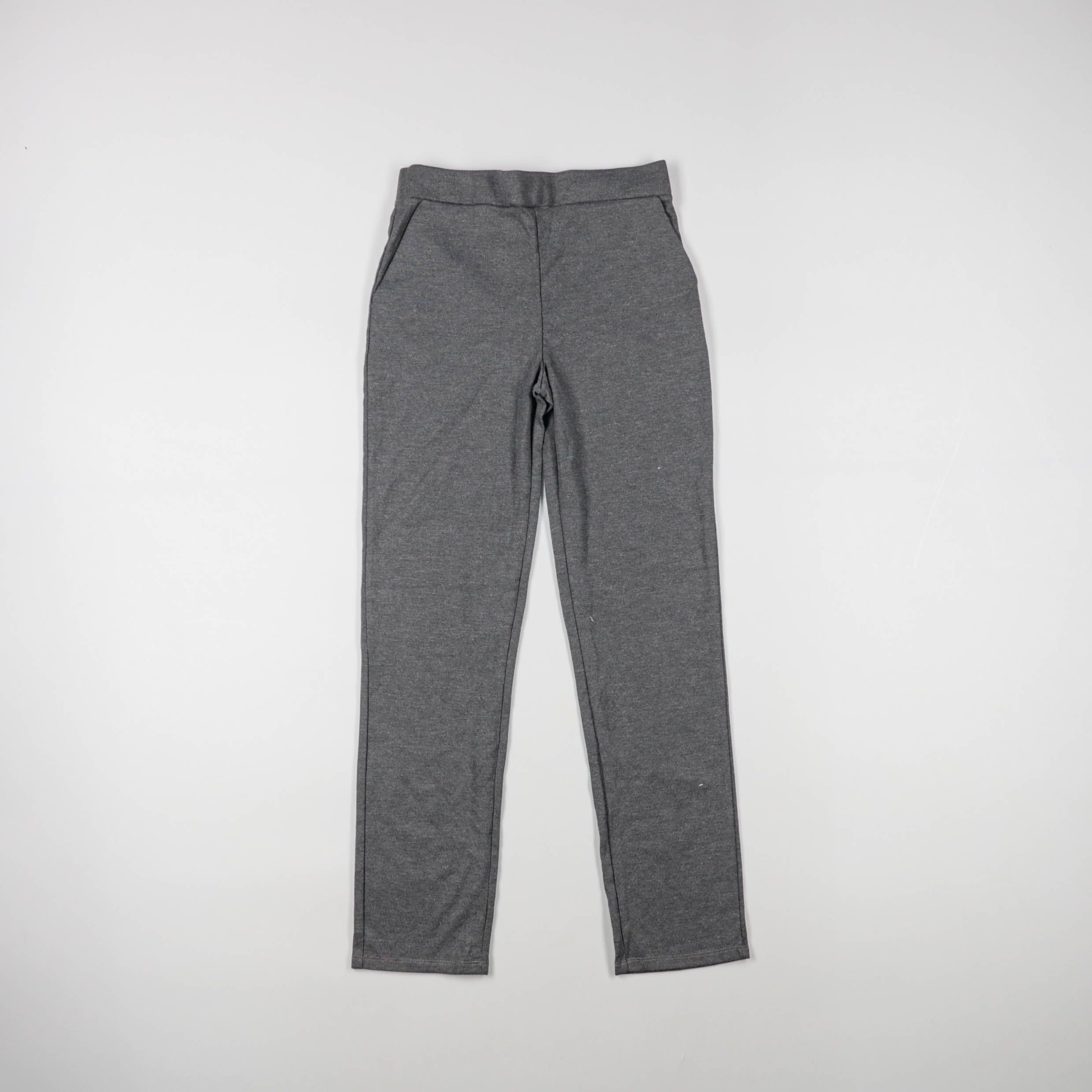 Женские серые трикотажные брюки прямого кроя с боковыми карманами и эластичным поясом. Подойдут для повседневной носки, дороги или домашнего отдыха, легко сочетаются с худи и футболками. Практичный плюс — комфортная посадка и простота в уходе.