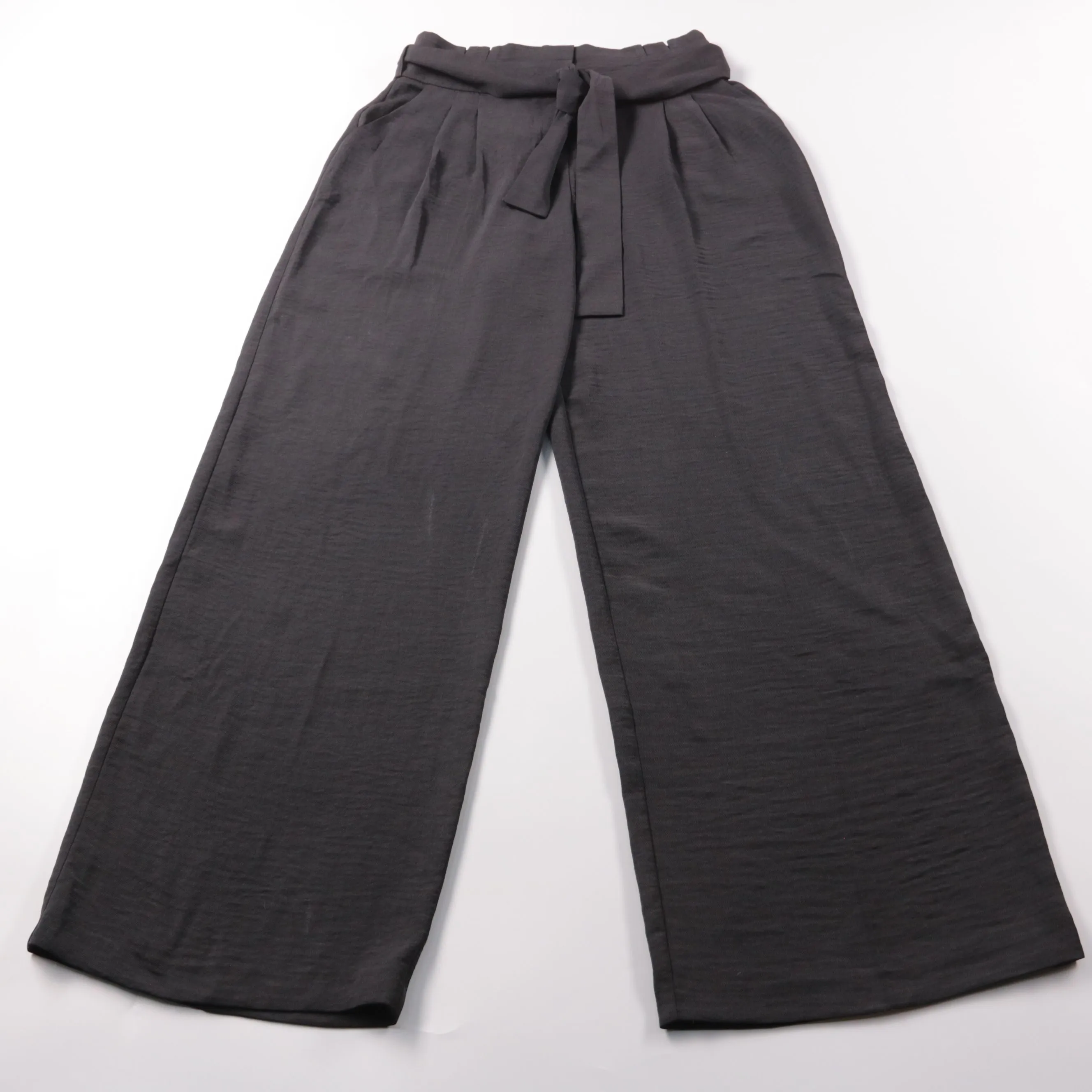 Женские брюки Etam модели палаццо из лёгкой ткани с высокой посадкой и поясом-лентой. Подойдут для офиса и повседневных образов, хорошо сочетаются с блузками и жакетами. Практичное преимущество — свободный крой не сковывает движения.