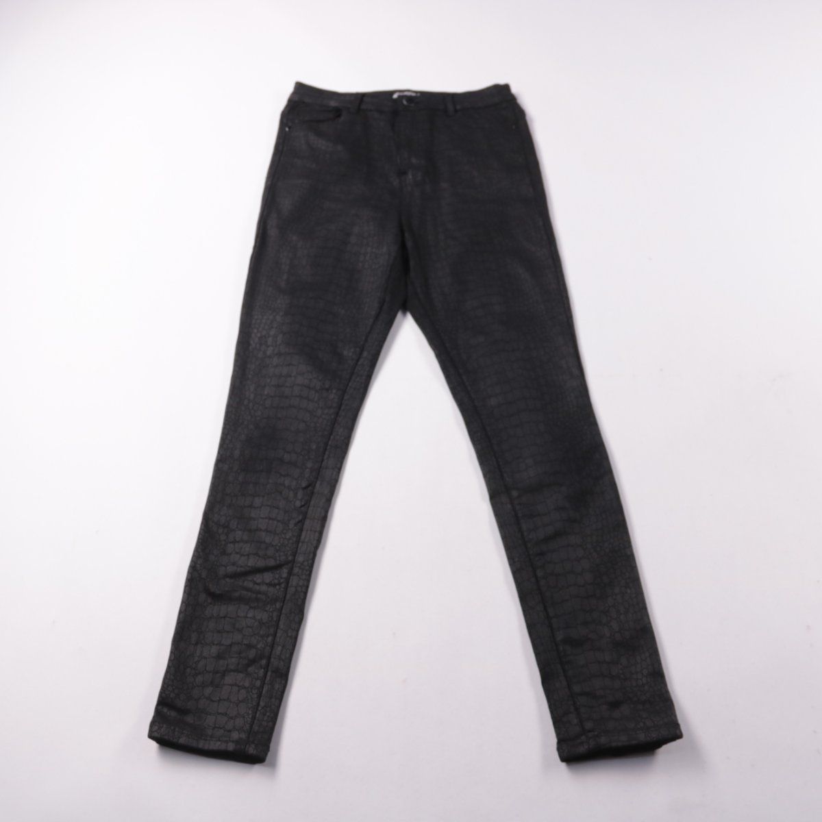 Женские зауженные брюки PrettyLittleThing чёрного цвета с фактурой под кожу рептилии. Подойдут для повседневных образов и вечерних выходов благодаря облегающему крою. Эластичный материал хорошо тянется и комфортно садится по фигуре.