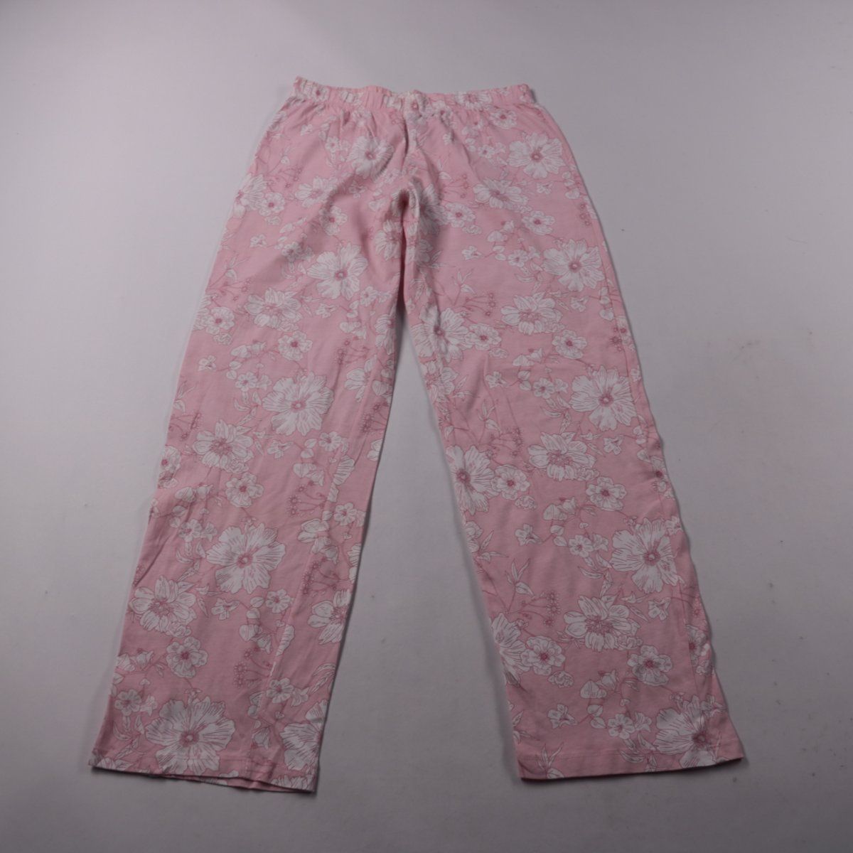 Женские брюки F&F розового цвета с белым цветочным принтом и эластичным поясом. Подойдут для дома, сна и отдыха в тёплую погоду. Пояс на резинке даёт более комфортную посадку.
