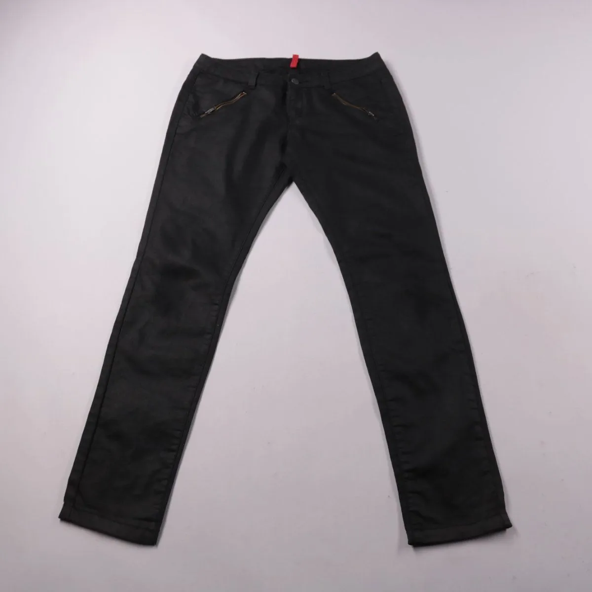 Женские зауженные брюки G2S чёрного цвета с застёжкой на молнию и пуговицу. Подойдут для повседневной носки и офисных образов в прохладную погоду. Плотная ткань с добавкой синтетики лучше держит форму и меньше мнётся.