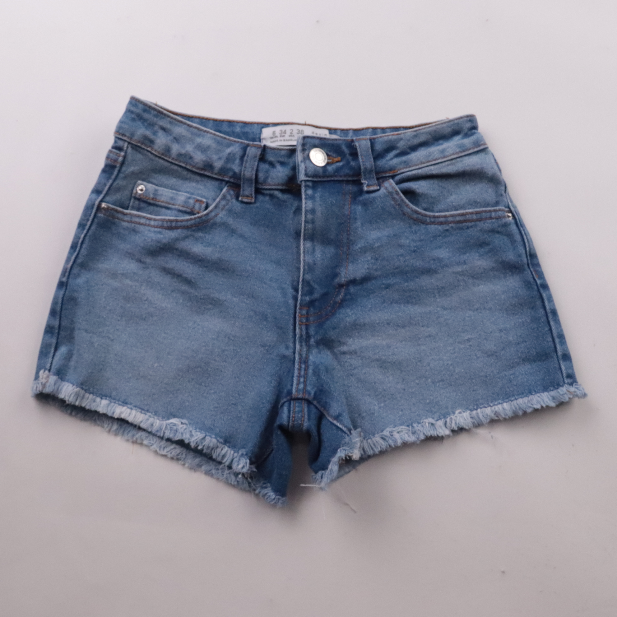 Джинсовые шорты Primark из денима с необработанным бахромчатым краем. Подойдут для лета и отдыха, легко сочетаются с футболками и топами. Практичный плюс — плотная ткань и удобные карманы.