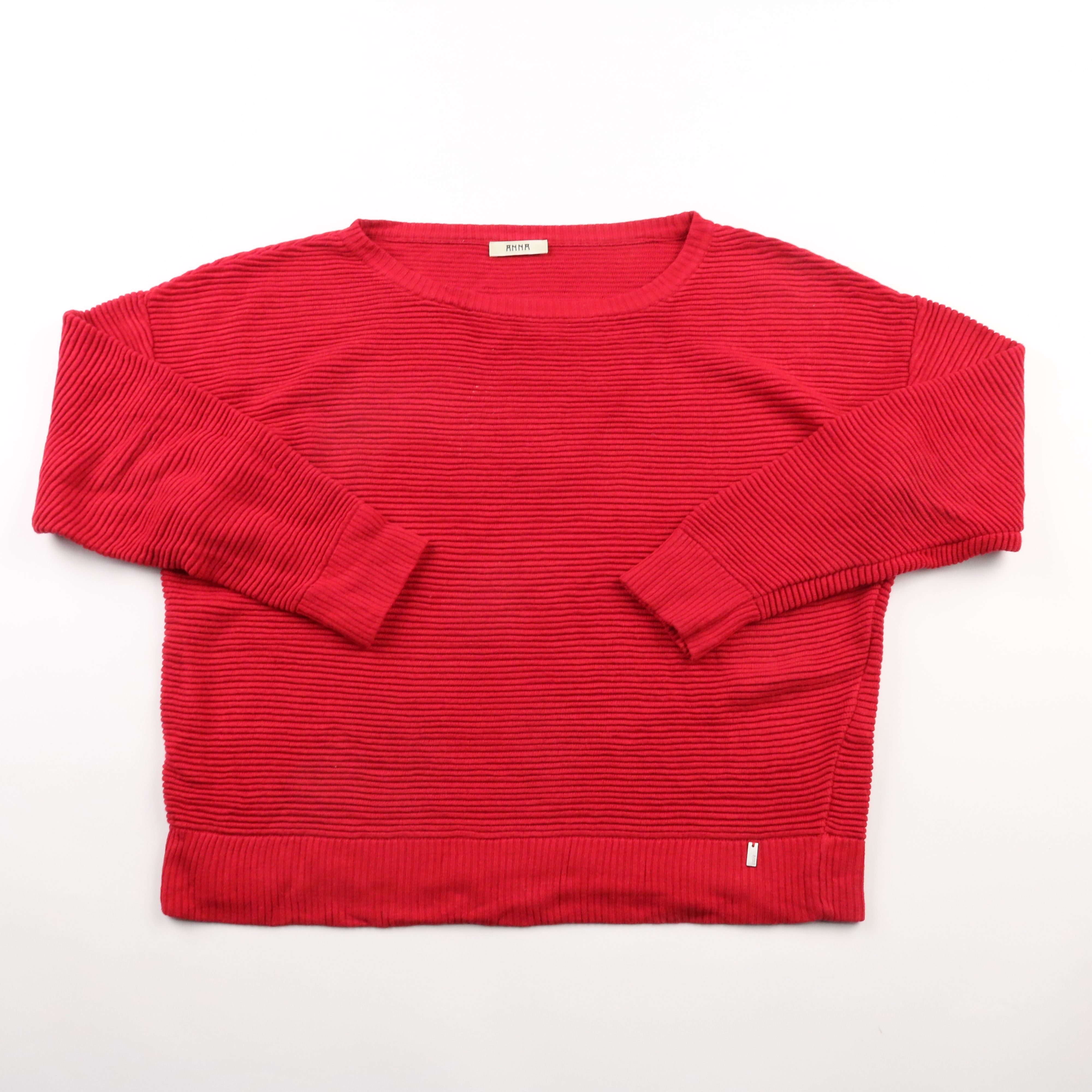 Красный джемпер Anna из фактурного трикотажа в рубчик с круглым вырезом и длинным рукавом. Подойдёт для повседневных образов в прохладную погоду, хорошо сочетается с джинсами и юбками. Смесь вискозы и шерсти приятна к телу и лучше держит тепло.
