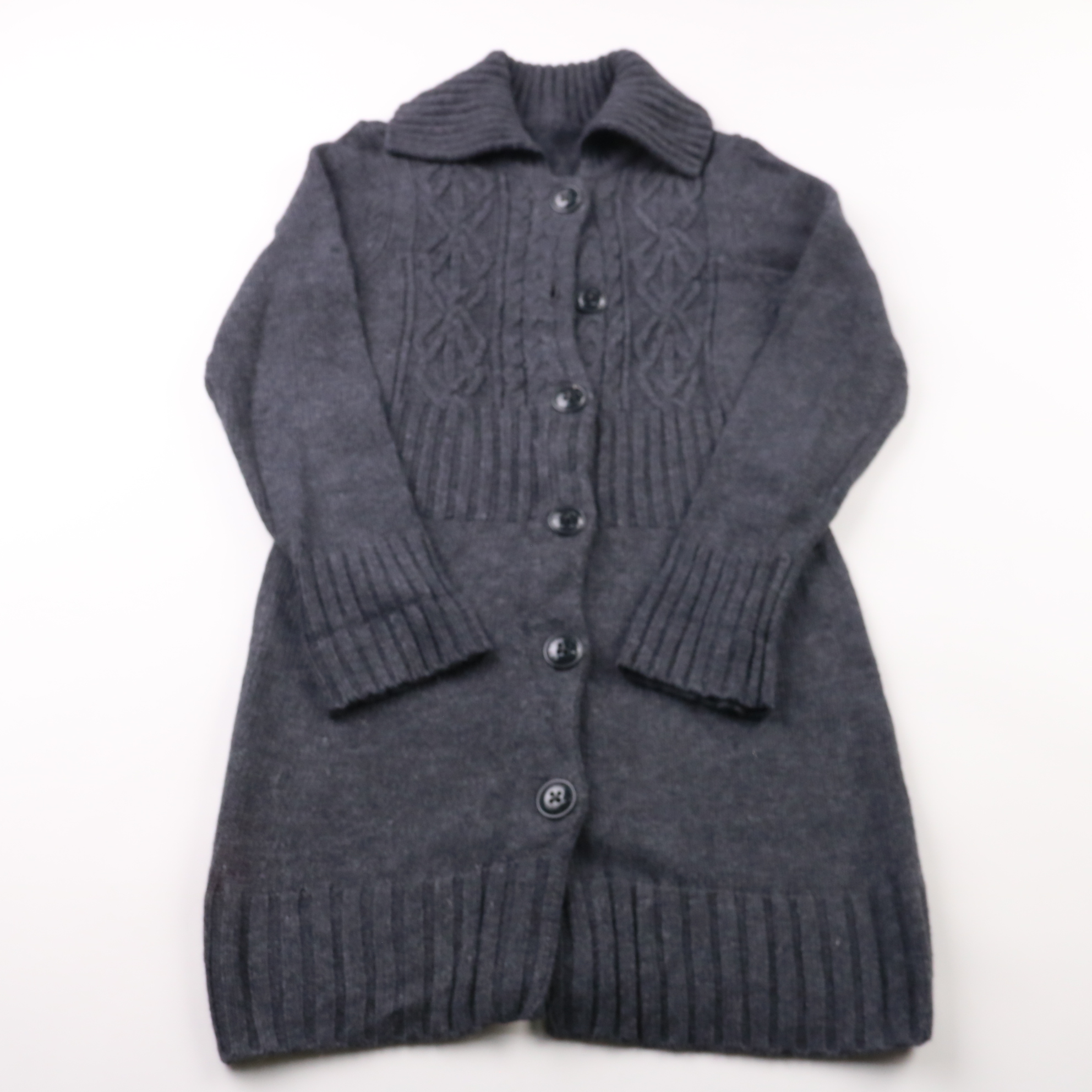 Вязаный кардиган Betty Barclay тёмно-серого цвета с фактурной вязкой и застёжкой на пуговицы. Подойдёт для повседневных образов в прохладную погоду — на работу или прогулки, хорошо сочетается с джинсами и брюками. Длинный фасон и плотные манжеты помога...