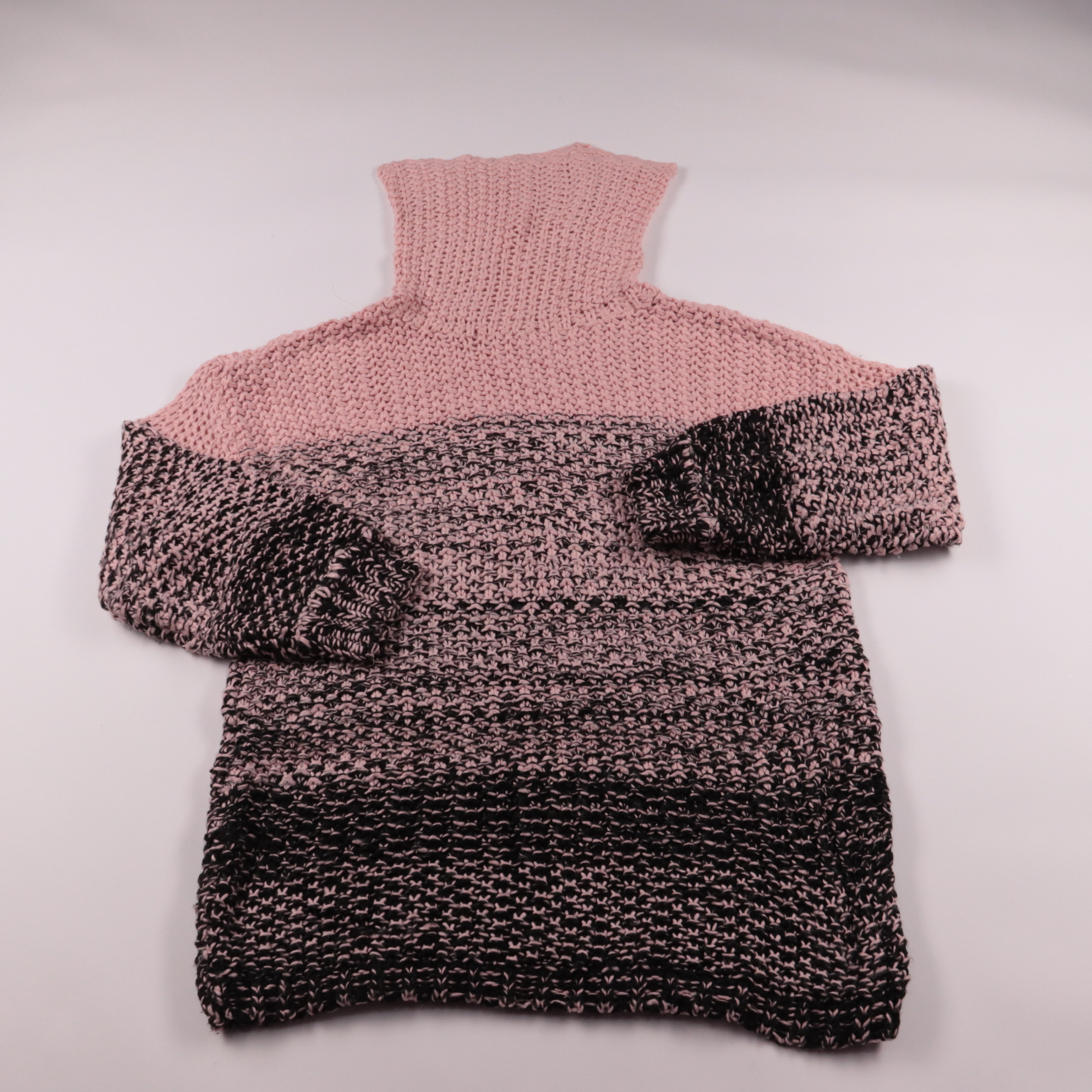 Свитер Bodyflirt крупной вязки с высоким воротником-стойкой и меланжевым эффектом в розово-чёрной гамме. Подойдёт для прогулок и повседневных образов в прохладную погоду, хорошо сочетается с джинсами и юбками. Объёмная вязка делает модель тёплой и комф...